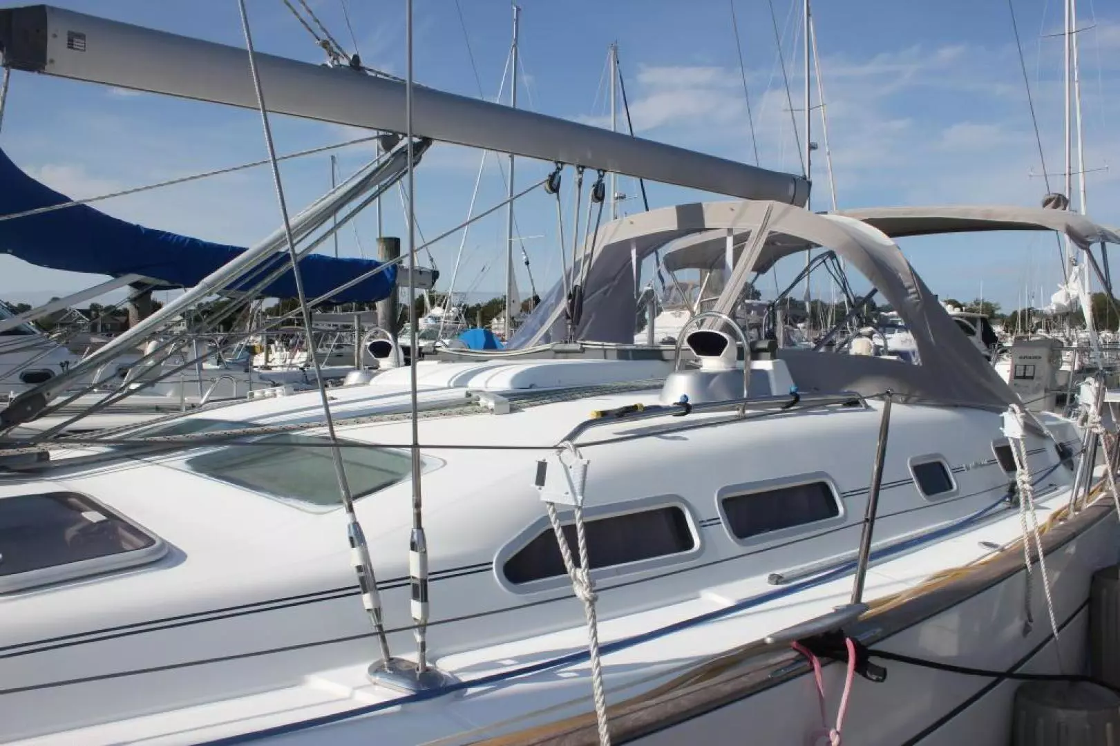 The Beneteau 423 has been named "Boat of the Year" by Cruising World Magazine and also won SAIL Magazine's Top 10 Sailboats for 2003. The Beneteau 423 is one of the most popular Beneteau models to date. Stardust offers a nice blend of comfort, speed, and graceful lines. She has an excellent sail inventory, in-mast main, roller furler genoa, and is equipped with a bow thruster. Her auxiliary power is a Volvo D2-55 diesel with only 350 hours. Check out the Full Specs and call for an appointment to see her. She is located in Greenport, Long Island.