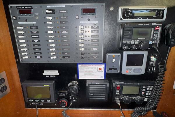 Power management and self-sufficiency are enhanced with dual 330-watt solar panels and dual charge controllers, while safety features include a Viking 6-man life raft, EPIRB, and halon fire suppression system. Electronics and navigation are provided by Raymarine, including chartplotter, radar, depth, speed and wind indicators and a Simrad autopilot.