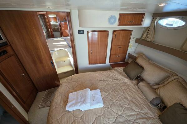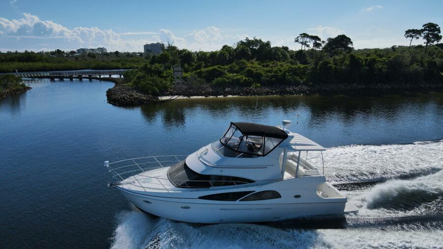 The 2005 Carver 41 Cockpit Motor Yacht is a midsize cruising motor yacht that blends spacious live-aboard comfort with a layout well suited for entertaining or water-oriented recreation. Built from 2005-2007, it features a modified-V fiberglass hull with a shoal draft of about 2 ft 7 in. making it practical for coastal cruising and inland waterway use. The beam is generous for its length—around 13′ 5″—providing good interior volume and deck space. LOA (length overall) is about 42′ 11″.