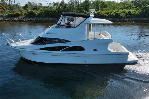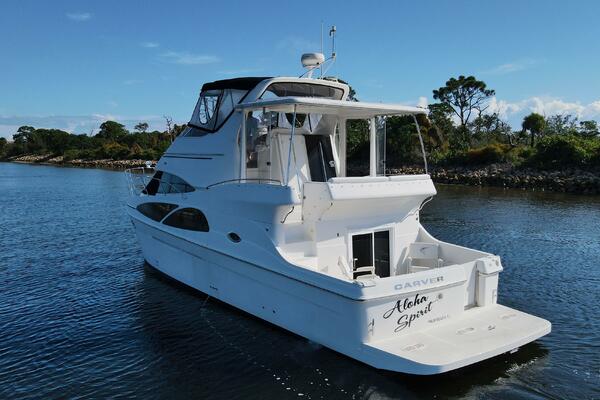 The 2005 Carver 41 Cockpit Motor Yacht is a midsize cruising motor yacht that blends spacious live-aboard comfort with a layout well suited for entertaining or water-oriented recreation. Built from 2005-2007, it features a modified-V fiberglass hull with a shoal draft of about 2 ft 7 in. making it p