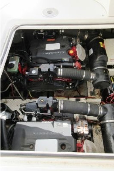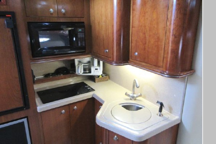 The COOLING TIME is a 2005 model Cruisers Yacht 370 Esprit Express Cruiser. The "370" Series were immediately popular given the exceptionally-large interior for her class, pleasing styling, the excellent level of finish as well as the good performance offered. She's powered by twin VOLVO-PENTA 8.1 GI 375 HP gas engines that are fresh-water cooled. The yacht will cruise comfortably at 20 knots at 3300 RPM's.