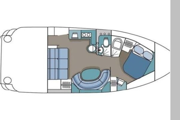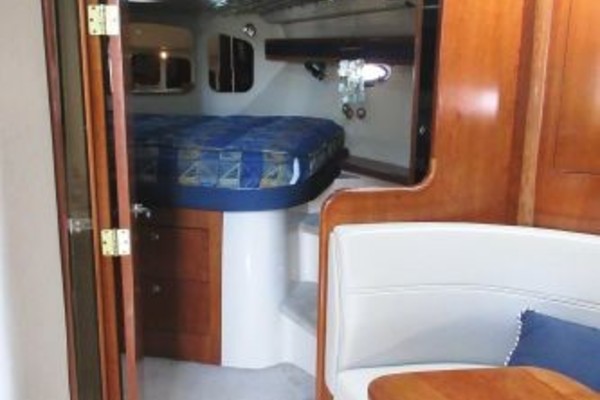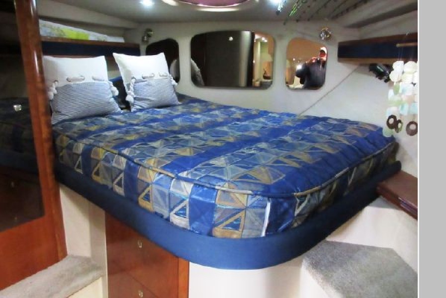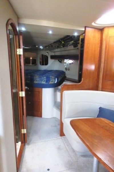 The COOLING TIME has the standard Cruisers 370 Esprit interior layout that offers the "double berth forward" Stateroom / Owners Cabin, The aft seating / sleeper sofa is included in the midcabin area that converts into a large berth. The "single-level" Salon sole .. with no steps down to the Mid-Cabin .. also has been quite popular over the years.