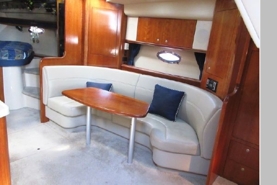Dinette w/ crescent table (note: converts into berth, cushion stored under Owners Cabin berth forward)