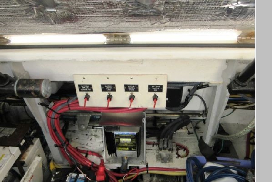 Batteries (4); all 12 VDC, (3) 130 AH (new, Spring 2020) for Ship's Service / House & Engine Start. The 4th battery is for Generator Start (note: about 100 AH).