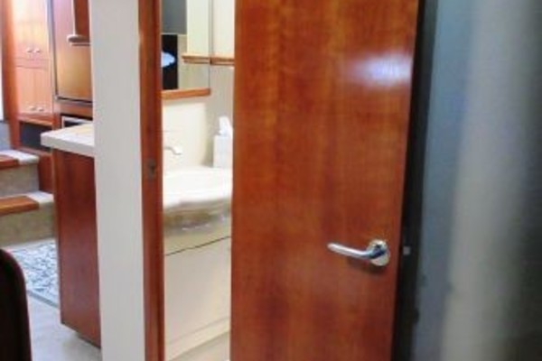 SAMSUMG TV & DVD combo in forward Stateroom (note: Factory Option & mounted on a swing-out bracket to enable viewing in the Salon)