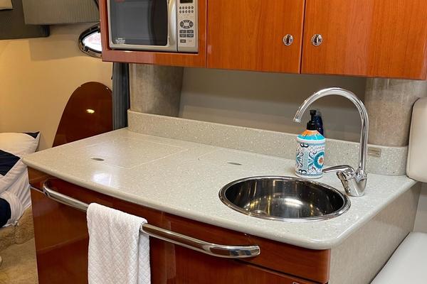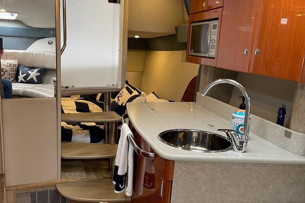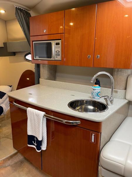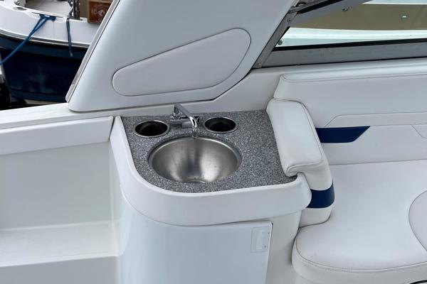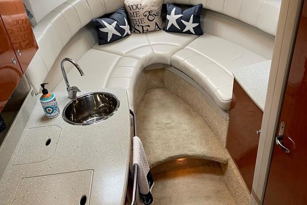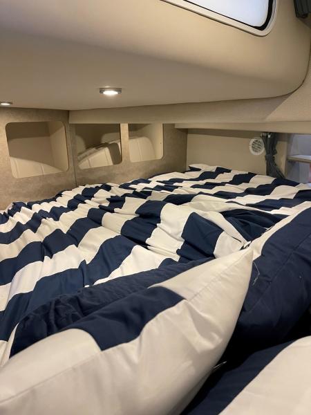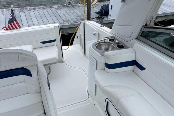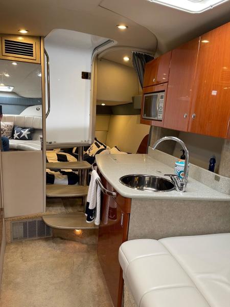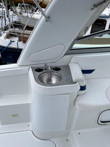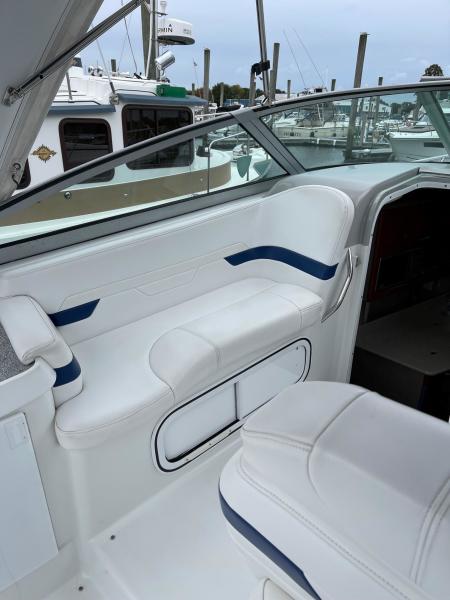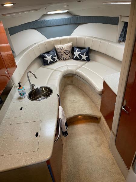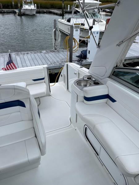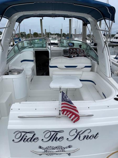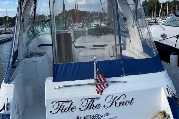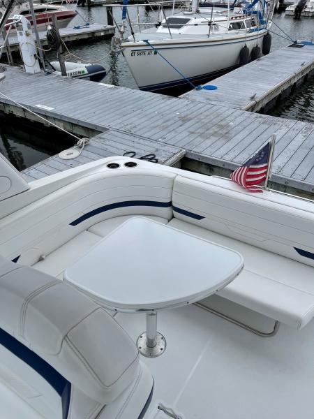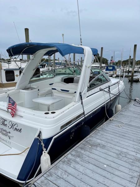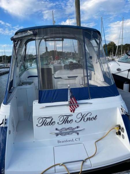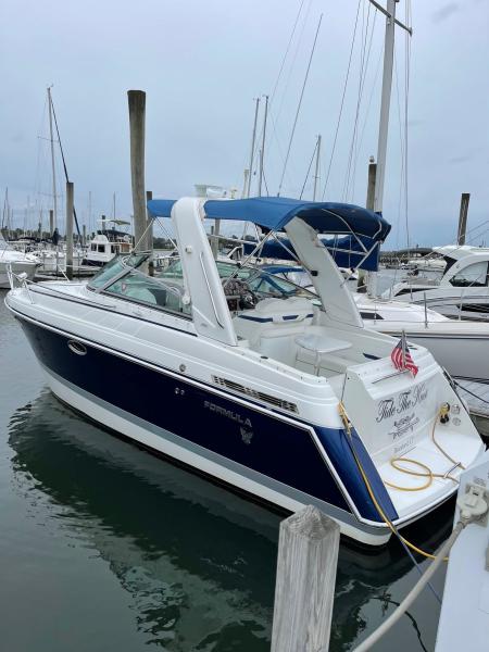 Tide the knot a 2005 Formula PC27 that has been pampered by its owners - maintained mechanically by the marina if the boat needed something addressed it was done. Powered by a pair of Mercruisers 5.0L motors with Bravo III drives that have been fully serviced. A Kohler Gen set to run the AC when on a mooring as well as the electric stove and micro wave. The boat comes with a complete canvas / isinglass enclosure which is in good condition as well as the upholstry is like new. The interior has been hardly used and it shows well. The PC27 is a great get away weekend boat or just cruise the Sound. Give me a call to schedule an appointment to view this beauty.