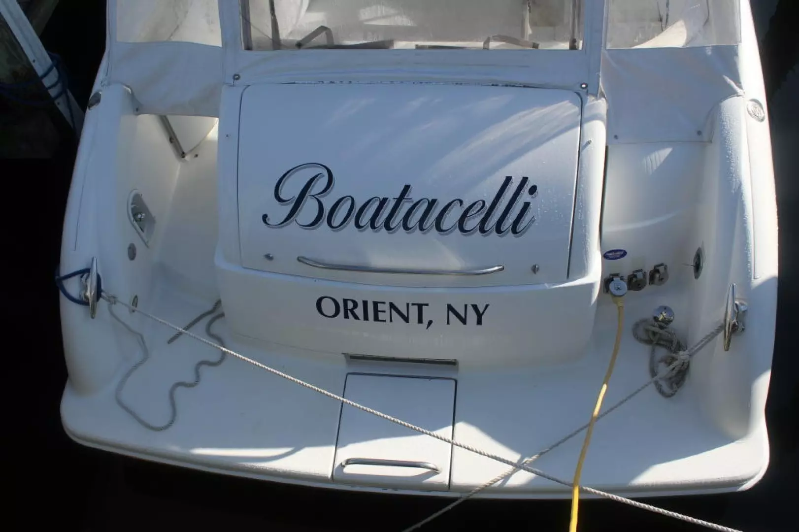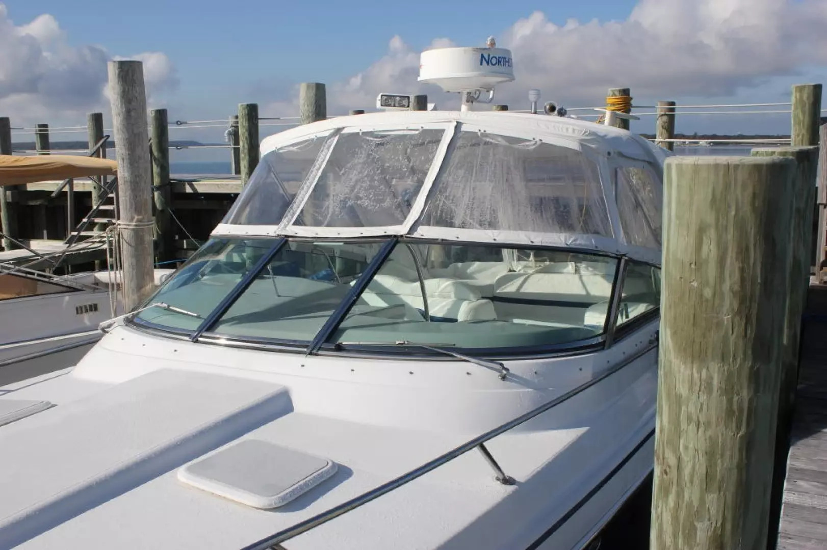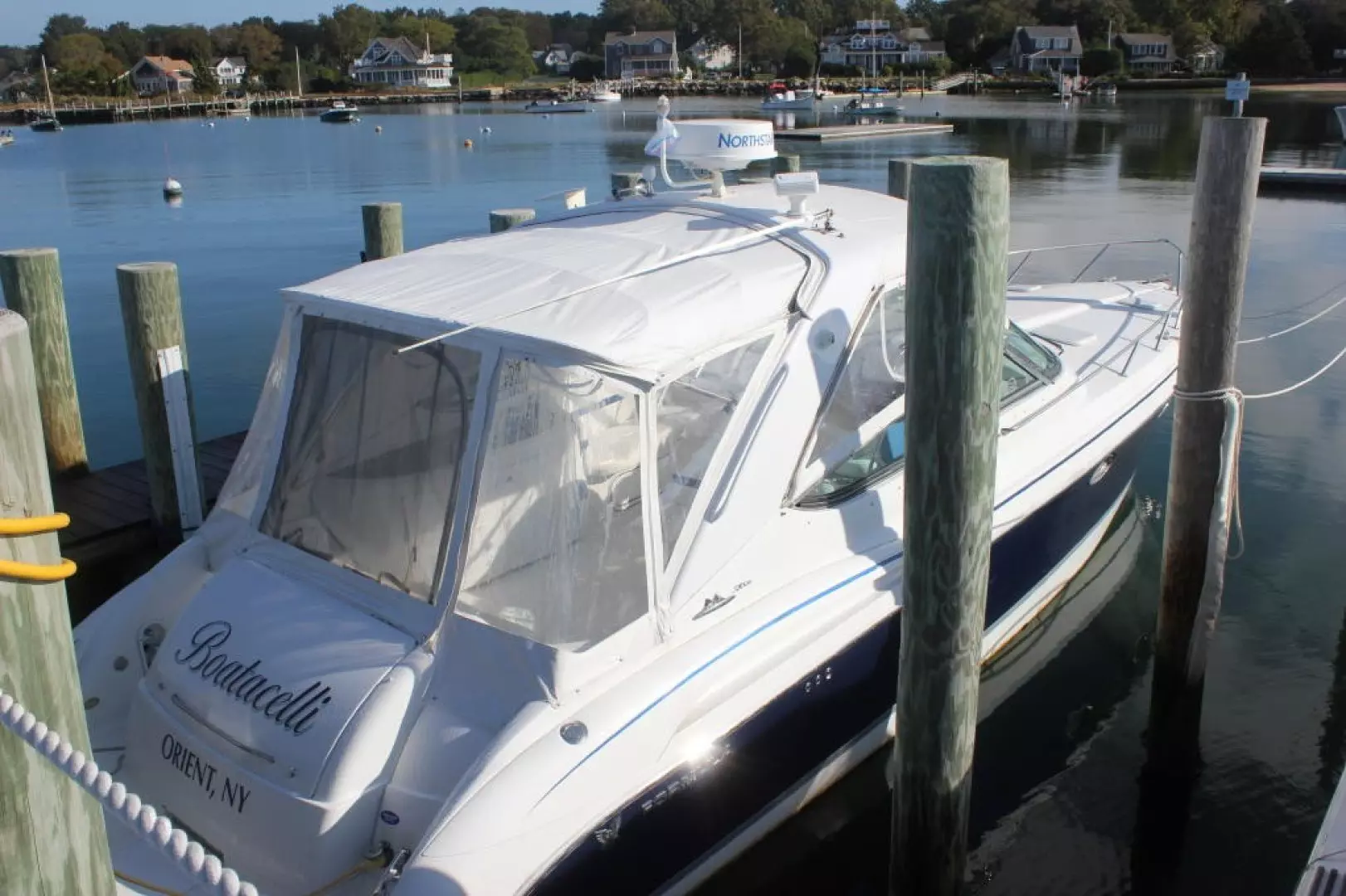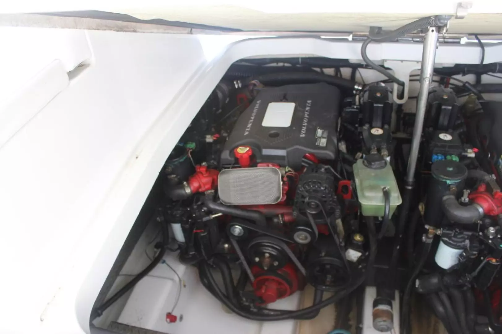 The Formula 370 Super Sport powers up to a faster pace with exhilarating multi-step hull performance, smooth design lines and solidly superior offshore construction. She is a sleek, aggressively styled sport cruiser with an enviable combination of superior construction, first class accommodations and excellent open water performance. She has considerably more cockpit space than traditional express cruisers and she has a very innovative layout both on deck and below. This air conditioned beauty comes with all the standard 370 SS features and amenities and has 6' 2" headroom, a white bimini with matching full enclosure, fresh water flush, central vacuum sweeper, windlass with chain and anchor, remote control Halogen spotlight, and polished SS windshield. She is powered by twin 420 HP Volvo 8.1 GXi DPs with only 560 hours and recent manifolds and risers and she has a 7.3 KW Kohler generator with only 20 hours. She is equipped with a Kenwood AM/FM/10 Disc CD, VHF, and Northstar 6000i integrated navigation system. Call to schedule an appointment to see her. She is located in Southold, NY for winter storage.