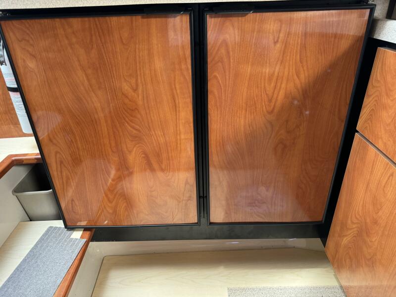 Four Winns largest boat ever, the 378 Vista joins a growing list of midsize family cruisers vying for the attention of the nation’s boaters. The Vista is a well-styled boat with her flowing lines and forward-facing arch, and she has one of the larger cockpits to be found in a 37-footer. Rather than the typical midcabin interior, the 378 features an expansive salon with two convertible sofas, one along the aft bulkhead and the other along the starboard side. Privacy curtains separate the fore and aft sleeping areas from the main salon, although an aft-cabin bulkhead with door was optional. The galley offers abundant storage and counter space, enhanced by faux granite countertops and cherry cabinets. Note that air-conditioning and a central vacuum system are standard, as is the flat-screen TV installed above the galley. On deck, a walkthrough windshield provides easy access to the foredeck. Cockpit seating includes a U-shaped lounge aft, double helm seat and a portside lounge, and the engine compartment is reached through a deck access panel or the standard power hatch. Twin 375hp gas inboards cruise the 378 Vista in the low 20s and top out at just over 30 knots.