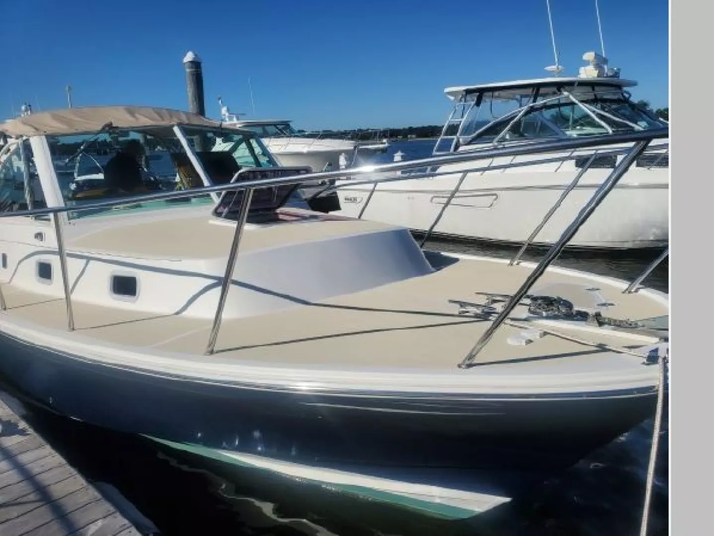 The Hunt 29 Surfhunter offers Classic Downeast styling and the built-in quality of Hunt Yachts. Admiralty is a well maintained, upgraded luxury-class express cruiser. The understated elegance and exceptional fit and finish turn heads from any angle in any harbor. Below the waterline the solid Fiberglass hull with the sharp entry matched with cored hull sides allows planning at 12 knots. The legendary C. Raymond Hunt has designed vessels for decades, his client list reads like a who's who of the yachting world. If you desire a timeless, classic vessel with design pedigree you owe it to yourself to tour this turn key vessel. Contact Jim Colletti at 917-620-5955 or email me at jcolletti@breweryacht.com for an appointment. Brewer Yacht Sales 86 Orchard Beach Blvd. Port Washington, NY 11050.