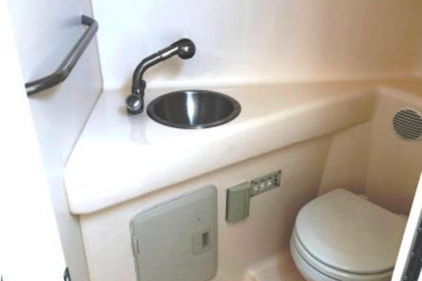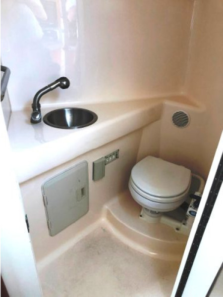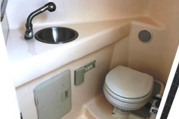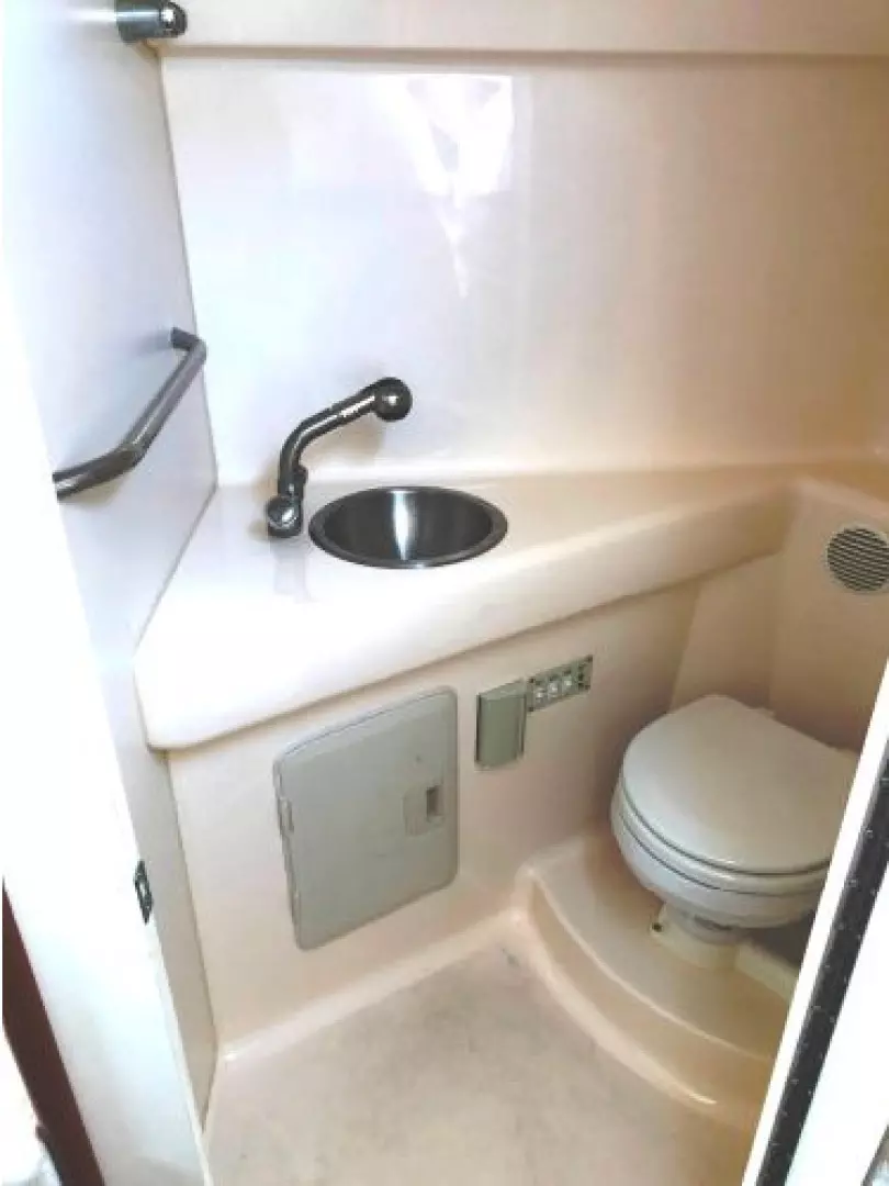 There is a fully-enclosed Head that is located to starboard & just forward of the Companionway entrance.