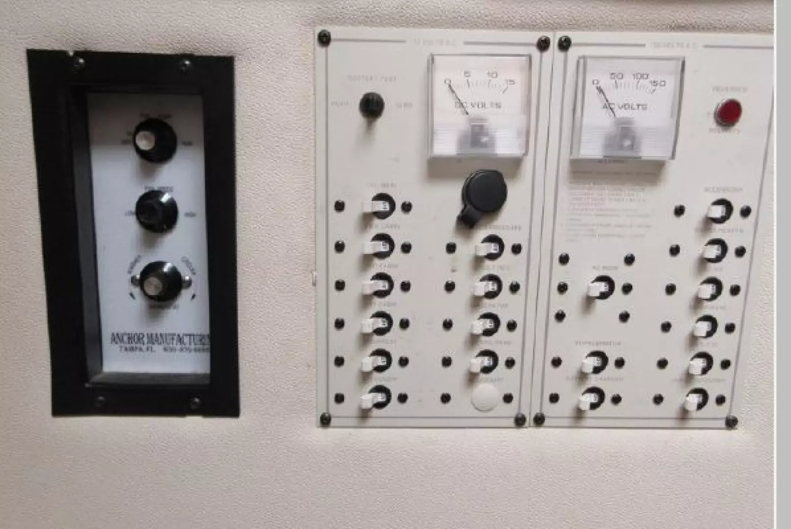 Electrical panel for 12VDC & 110VAC functions (note: located port side & just aft of Galley)