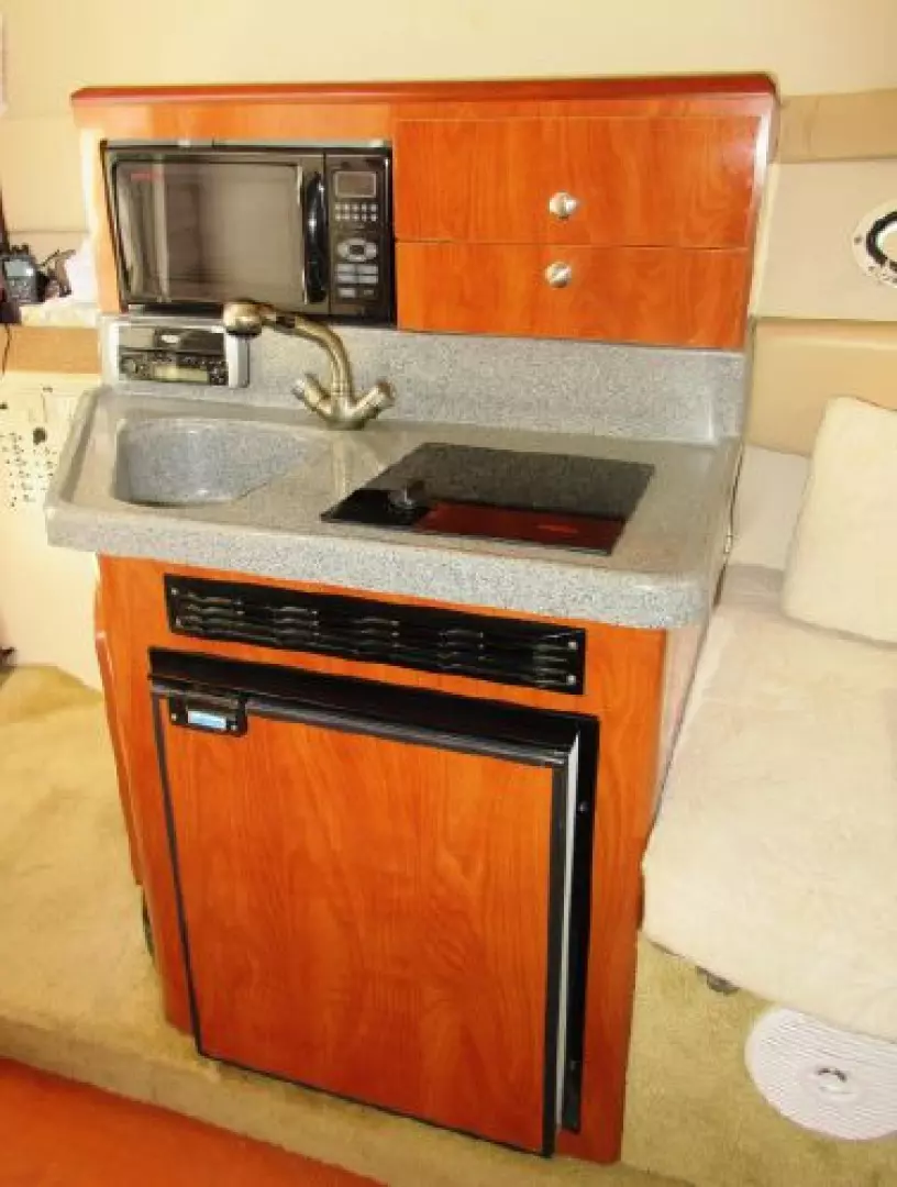 The LARSON Cabrio 274 Express Mid-Cabin offers an exceptionally roomy interior for a yacht of her type & size range. The interior is also well-ventilated and is light & airy with good ambient lighting.