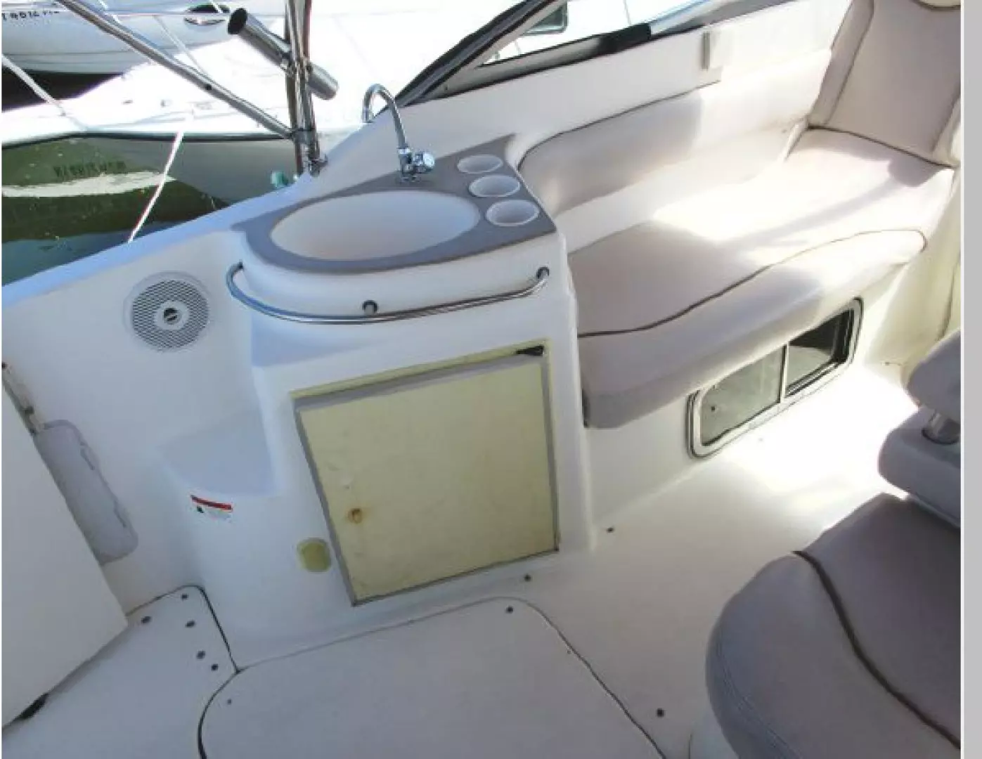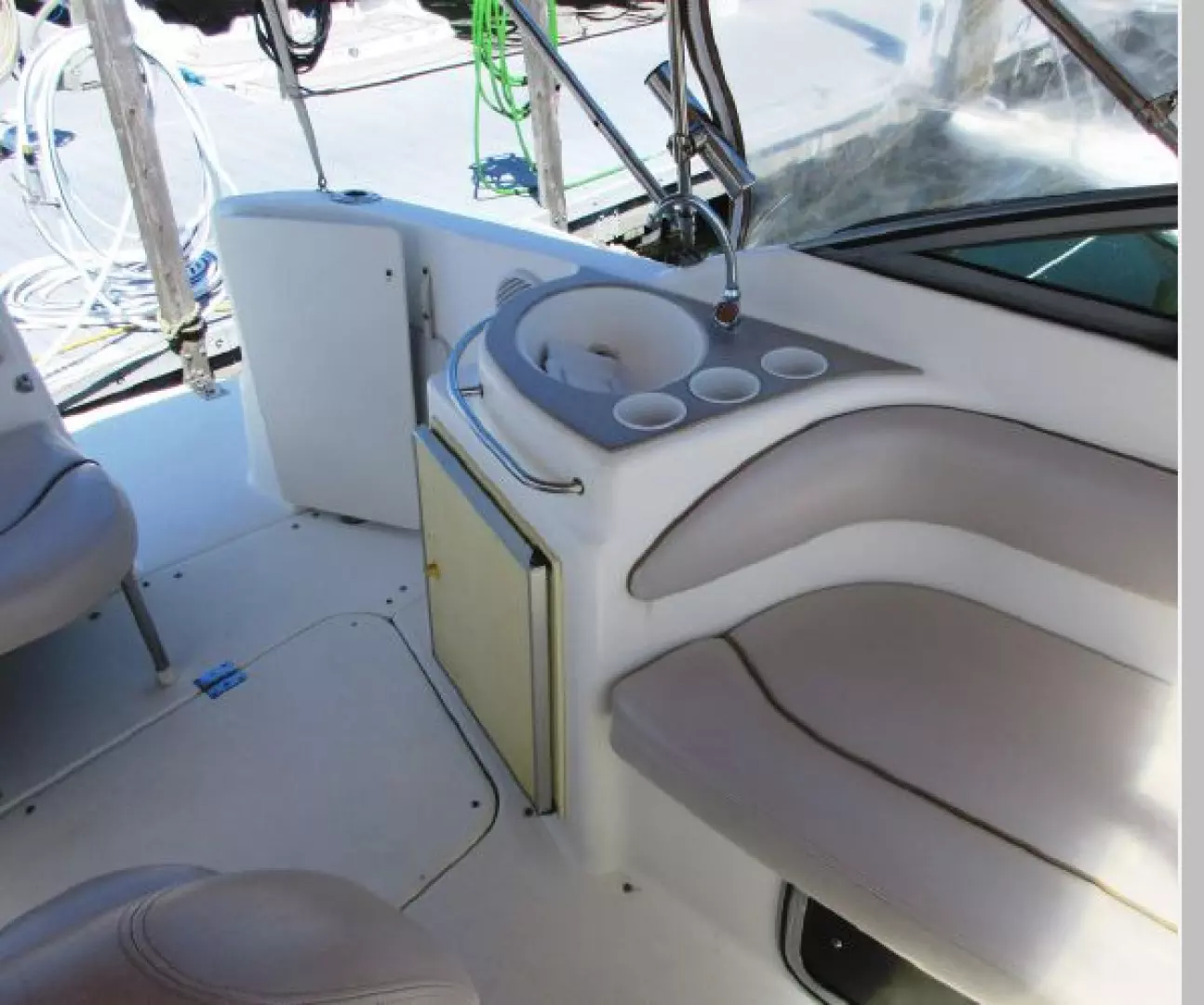 The Cockpit cushions .. including those for the Helm Station .. were all replaced in 2016 with Beige Leatherette cushions throughout.