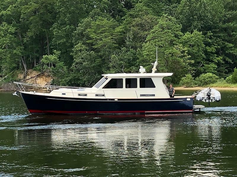 Legacy Yachts was established in 1995 and can trace their origins to the well respected Freedom Yacht Company. Built in Rhode Island, the Legacy 42 Sedan is highly regarded for her quality of construction and classic Downeast design. Downeast style cruisers, such as the Legacy 42, have become extremely popular due to their classic styling, performance and fuel efficiency. "Tilly Too" is in excellent condition with many recent upgrades (including recently added GARMIN electronics package) , and she will not disappoint. Powered by a single Cummins QSM11 660 HP diesel (@1735 lifetime hours), the "Tilly Too" is extremely fuel efficient and also has the ability to cruise at 18 knots with a top-end of 24 knots. With her bow and stern thrusters and side door at the helm, "Tilly Too" is quite easy for a couple to handle at the dock. Her propeller is skeg-protected, and she is equipped with a very nice electronics package. This boat is a real head-turner at every yacht club that she visits!