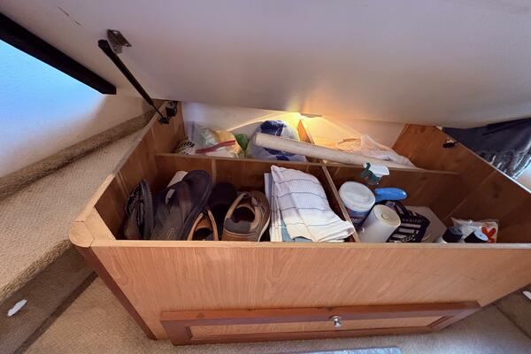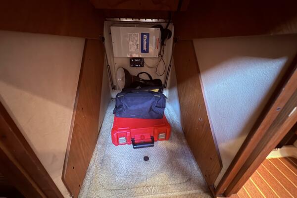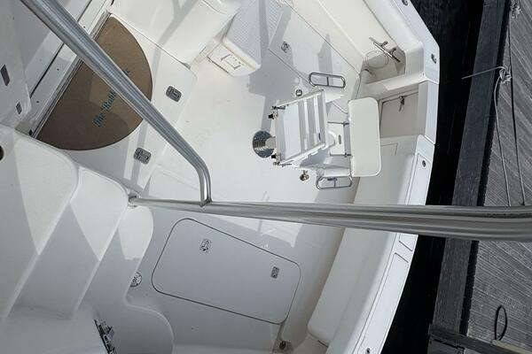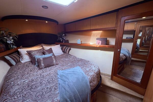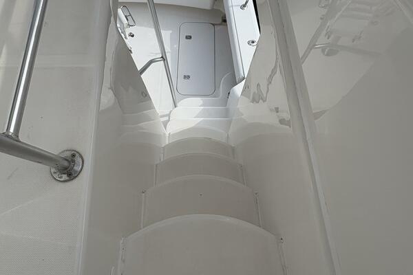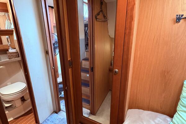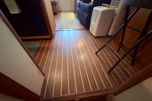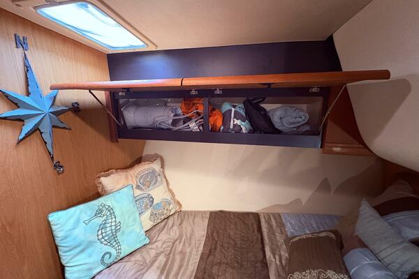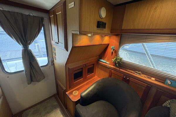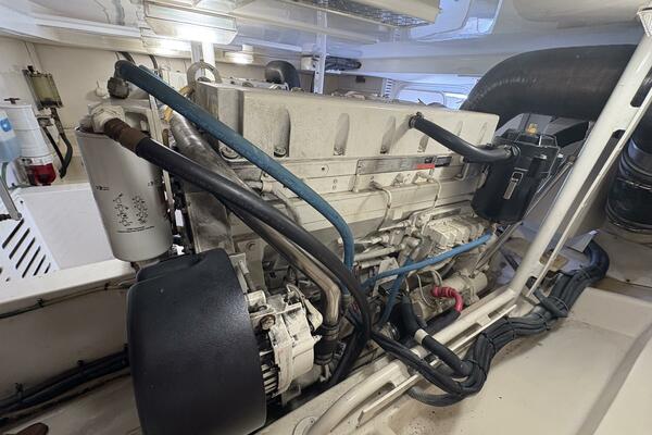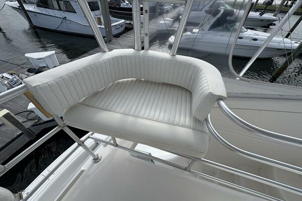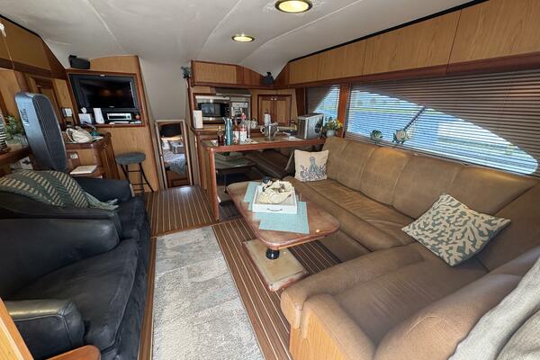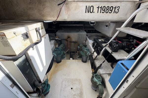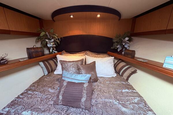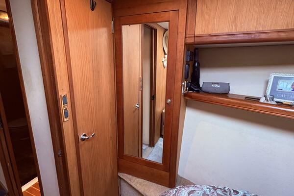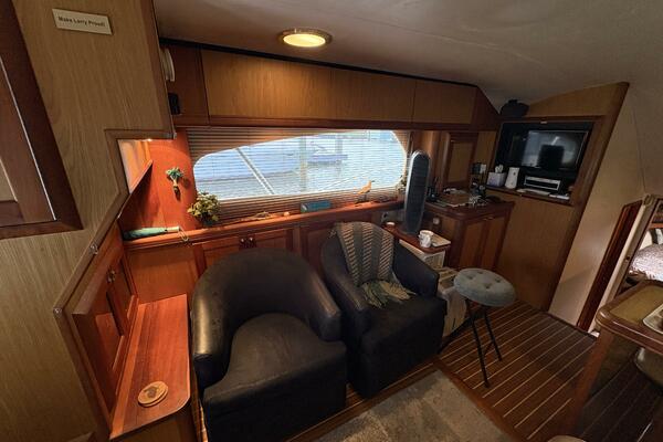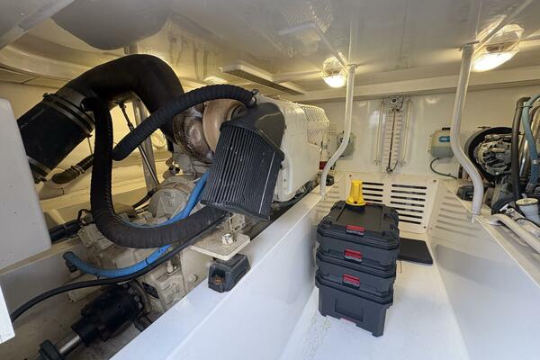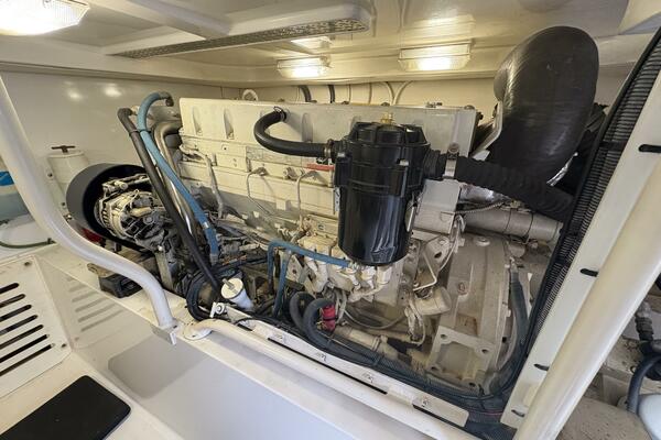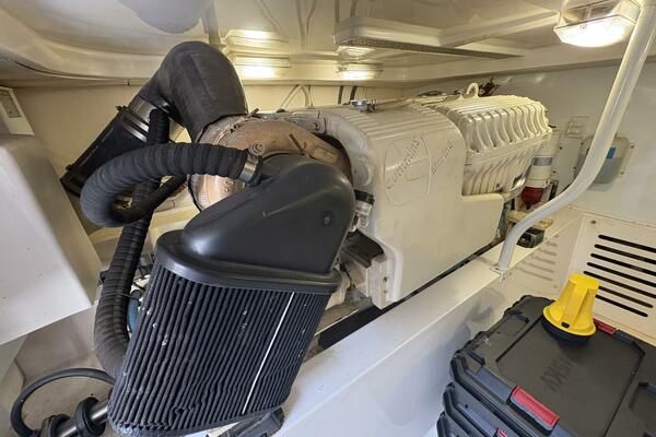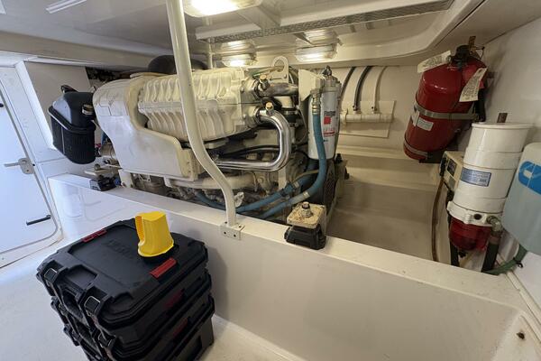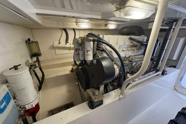 Offshore anglers will find a lot to like in the Luhrs 41 convertible, beginning with her rakish good looks and including a spacious interior and good open-water performance. Heavily built on a modified-V hull with prop pockets and a wide 15’, 9” beam, the two-stateroom interior of the Luhrs 41 includes a large master stateroom forward with an island berth and two big hanging lockers. The U-Shaped galley is forward in the salon which has an ultra leather sofa, twin barrel chairs, and a full entertainment center with a flat screen TV. Salon flooring is a rich teak and holly sole, washer/dryer unit. Topside, the 85 square foot cockpit has two large fish boxes in the sole and two smaller boxes in the transom. A tackle center is forward with LiveWell and sink, and a portside stairway leads up to the bridge with an L shaped bench seat forward of the helm console. A hardtop is standard. Note that the engine room of the Luhrs 41 is particularly well arranged. (Powerboat Guide)