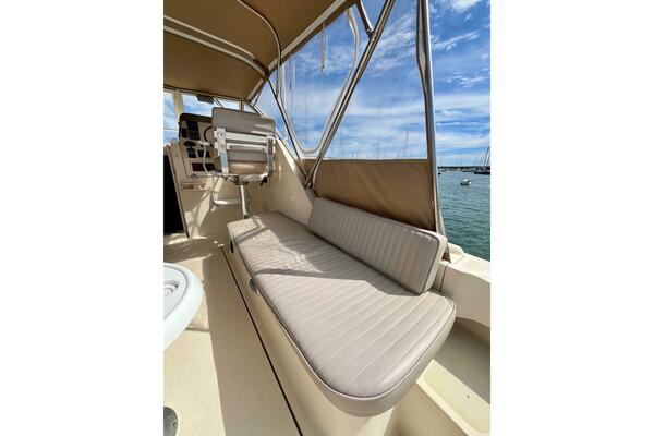 This particular Pilot II was originally delivered to the Great Lakes and used in fresh water until just three seasons ago when she was moved to the northeast. Fresh water use presents a distinct advantage over salt water boats in reduced corrosion and wear on materials.