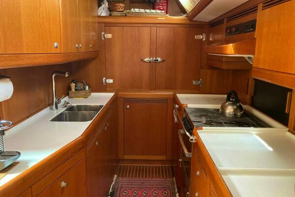 Aft of the salon to portside, U-shaped galley fully equipped with: