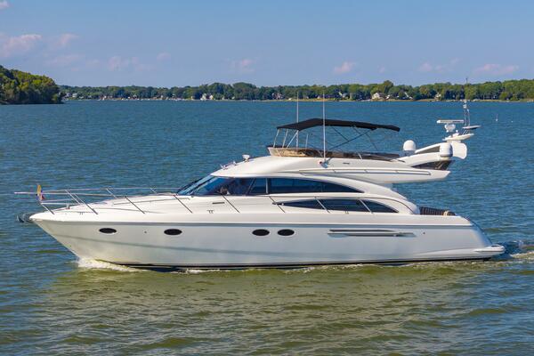 Step aboard this spectacular Princess 57 and you'll discover a vessel that's been pampered and upgraded since new. Her gelcoat gleams and her interior is stunning. All the soft goods were replaced by the previous owner, and she looks amazing inside and out. Full ceramic coating this year with a three-year warranty means no compounding or waxing in the near future. All three salon air conditioners were replaced this summer, Starlink was added and complete engine and generator service performed. 1000-hour service was completed at 900 hours by Staten Island Yacht Sales (an authorized Princess dealer). She is gorgeous and ready to run. Easy to see just south of Annapolis, MD.