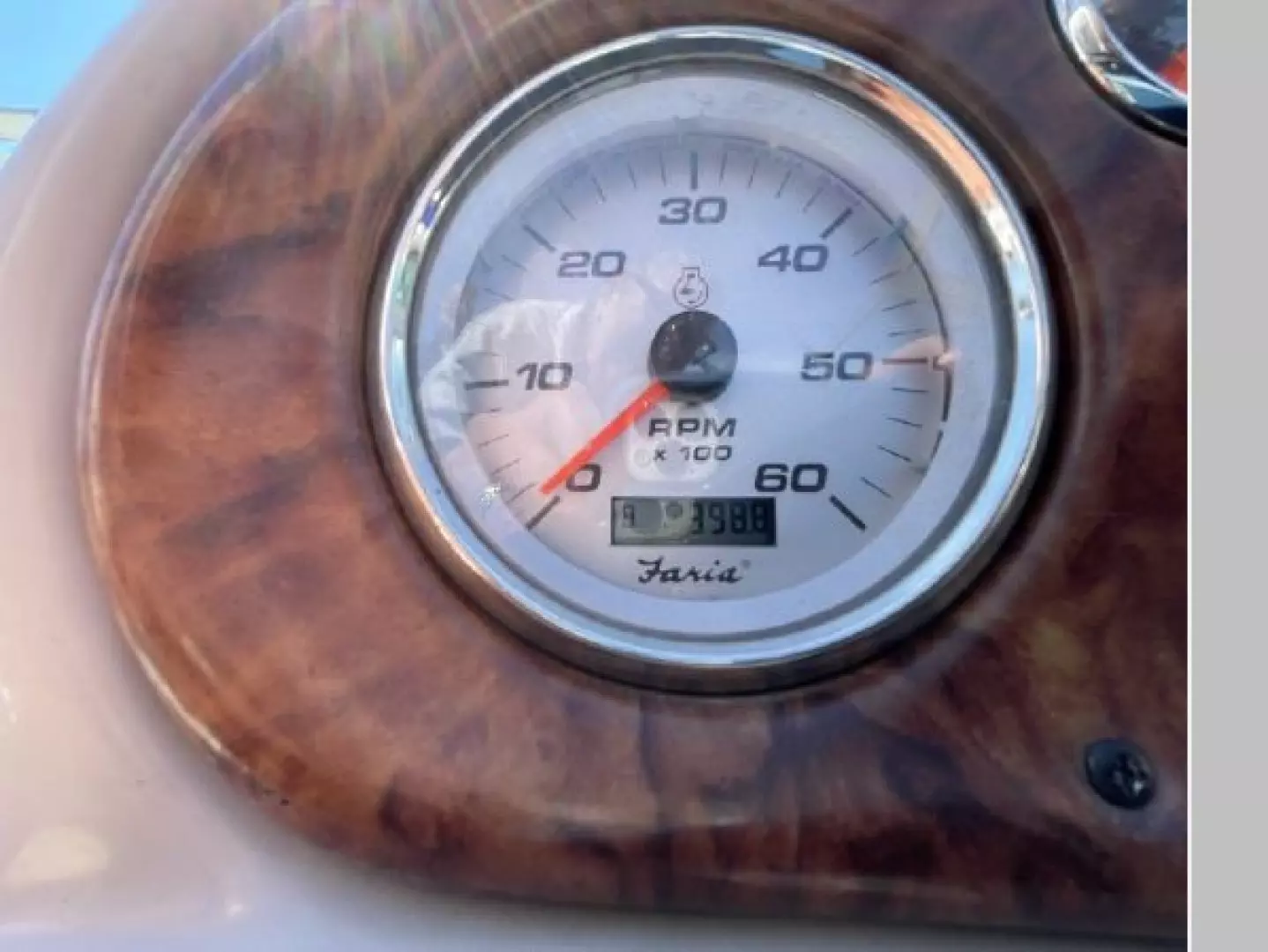 In and around 2005 Volvo experimented with a non metal outdrive. It was found to be unsuccessful. No worries here, as in 2015 this vessel had a complete new metal Volvo Penta outdrive system installed with new exhaust, Hi-risers, and transom shield with duo prop. This new system only has approx. 100 hours on her.