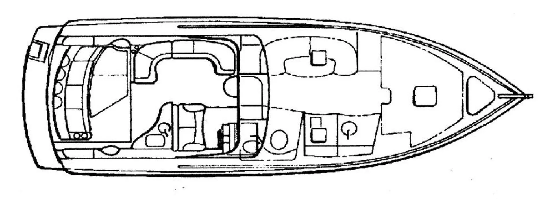The "320 Fiesta Vee Express" achieved her popularity by offering "a lot of boat for the money". Featuring a generous interior layout for a Mid-Cabin design for her day and with some 6'5" of headroom in the Salon,, her light & bright interior was .. and still is .. "hard to beat". Nice standard equipment details such as a Radar Arch, transom door, swim platform, fender storage and an electric engine room hatch .. all added to the "bottom line" appeal.