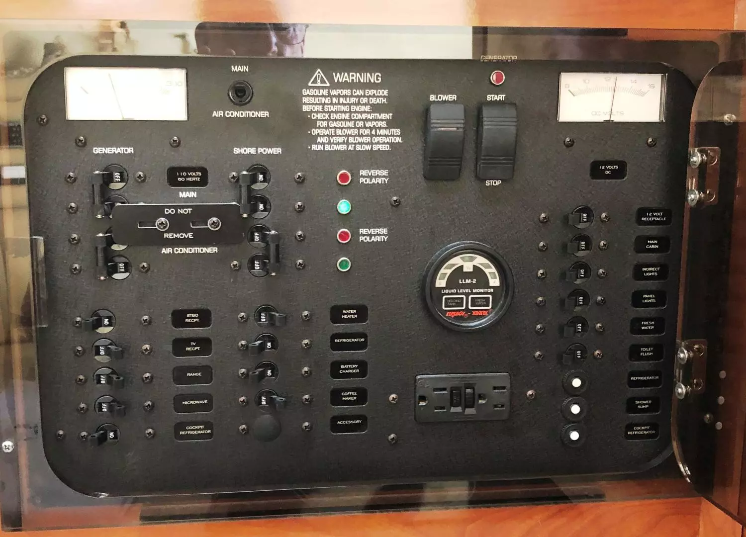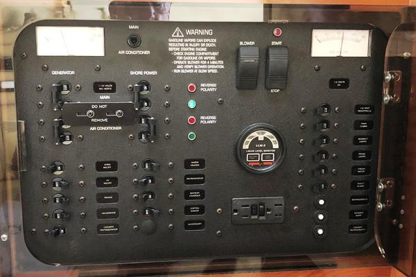 The RINKER 320 Fiesta Vee Express has both a 12VDC Ship's Service and 115VAC Shore Power Systems.