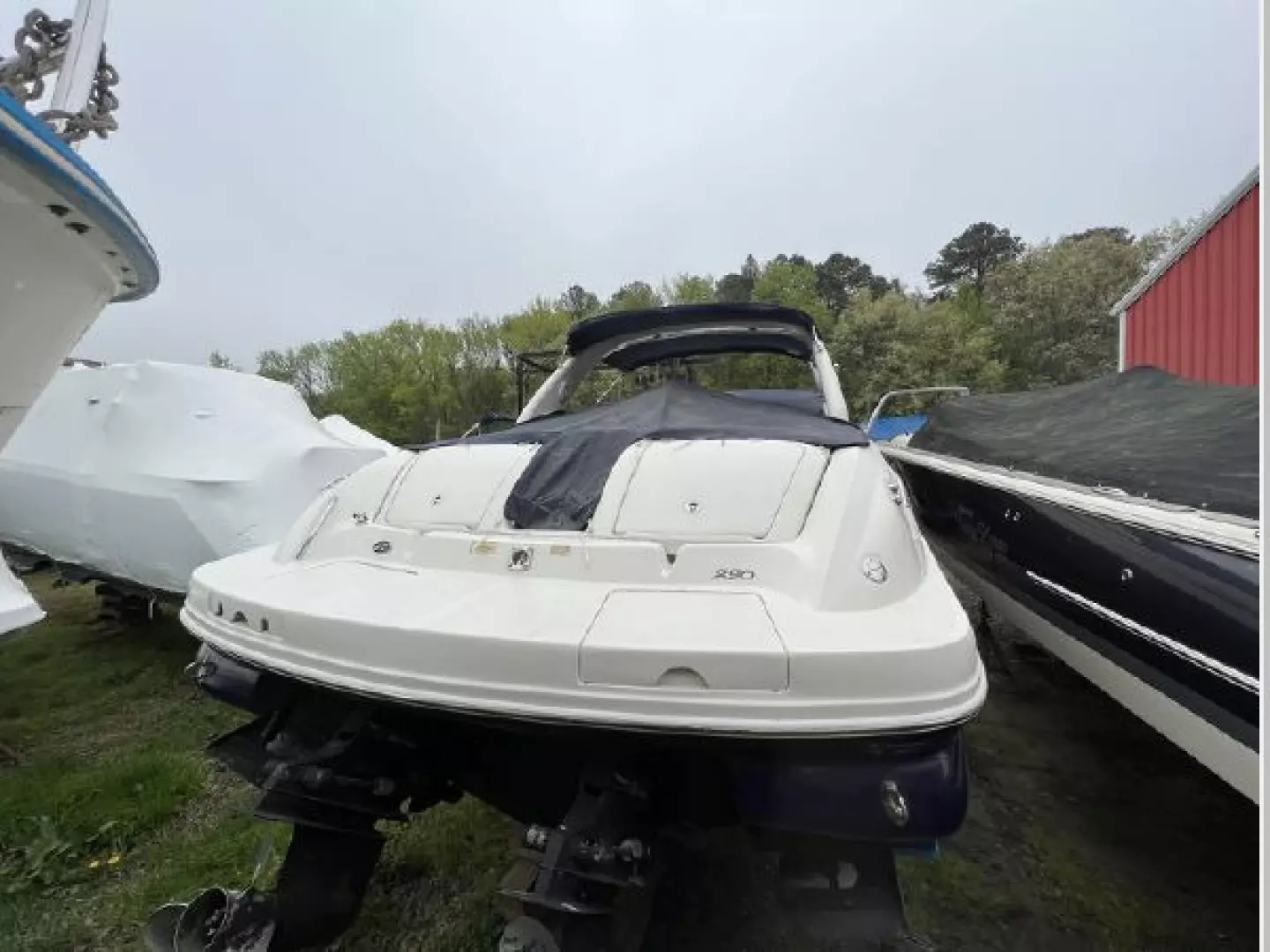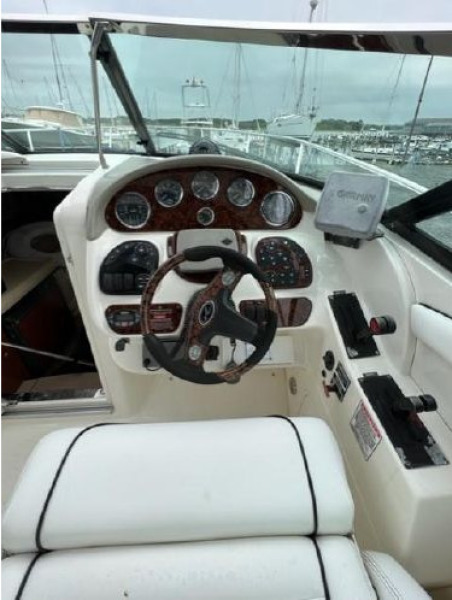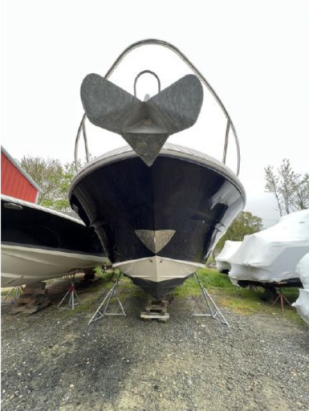 She was launched and run to check her systems and moved her to Oxford Boatyard for better visibility. New photos have been added showing her interior and exterior. She has been hauled back out where she will stay until sold. The manifolds and risers were replaced 3 years ago and a new fuel pump was just installed on the port engine. In the summers, she has been kept on a lift and in the winter she is hauled and shrink wrapped. This is a sporty, good looking vessel that not only is a great day boat but has comfortable accommodation for overnighting. She will be hauled and blocked on land at Safe Harbor Oxford until sold.