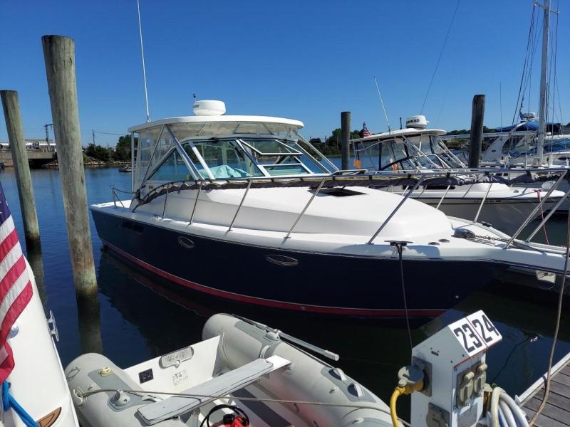 Classic dual-purpose Express with an upscale interior, and big cockpit delivers best-in-class engineering, construction, and performance. Very clean and well cared for by her present owners. Everything on the boat shows well. Sellers are motivated and she is priced to sell- pursuing other interests. Truly turn-key and ready to go for the rest of the season. Shown by appointment only.