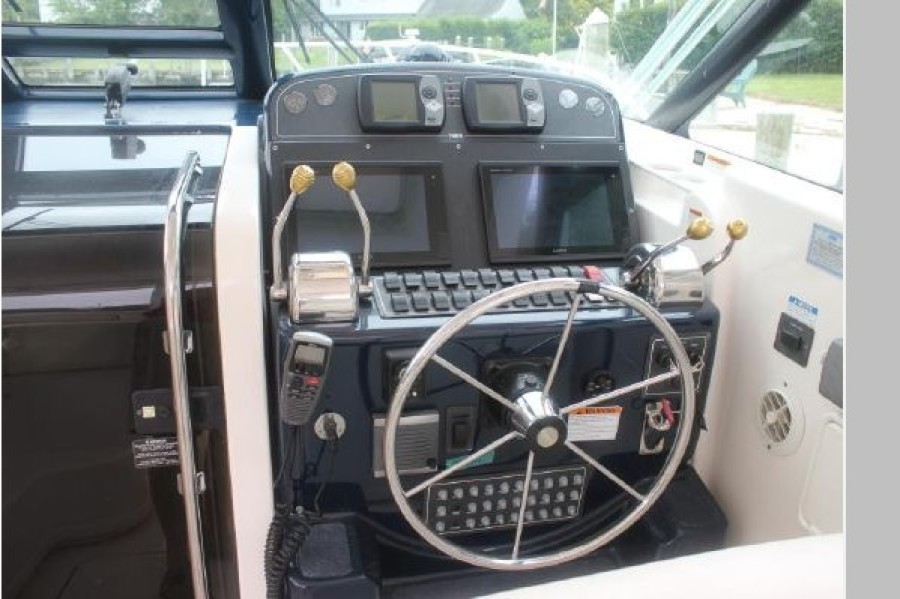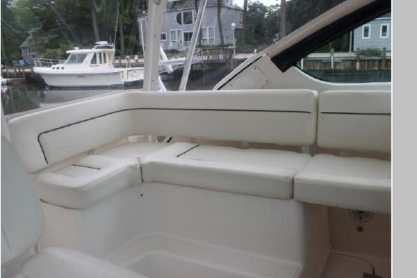 The Tiara 3600 Open is designed to satisfy both anglers and cruisers with a large 70-square-foot cockpit and a comfortable, well-appointed cabin. Rewired rides on a modified-V hull with a sharp entry, solid fiberglass bottom, and a relatively broad beam. You will appreciate the professional-grade cockpit with its aft-facing seats, overbuilt transom door, in-deck fish boxes, and fold-down transom seat. The helm deck has a portside lounge (with insulated cooler) along with a wet bar and tilt-away dash. Below decks, the interior is a blend of solid-wood floors, flawless teak joinery, Ultraleather upholstery, and brushed stainless-steel hardware. The U-shaped dinette converts into a double berth, and the backrest flips up to create a Pullman berth. A sliding door provides real privacy in the master stateroom. Additional features include fresh/raw-water washdowns, integral bow pulpit, wide side decks, and cockpit bolsters. She is powered by T-380hp Cummins diesels with 860 hours, Reconditioned props in 2020 and is equipped with a Westerbeke 5kW generator with 700 hours. She had an Awlgrip hull paint job in April 2020 and new enclosure in 2020.