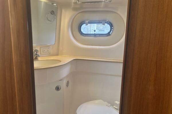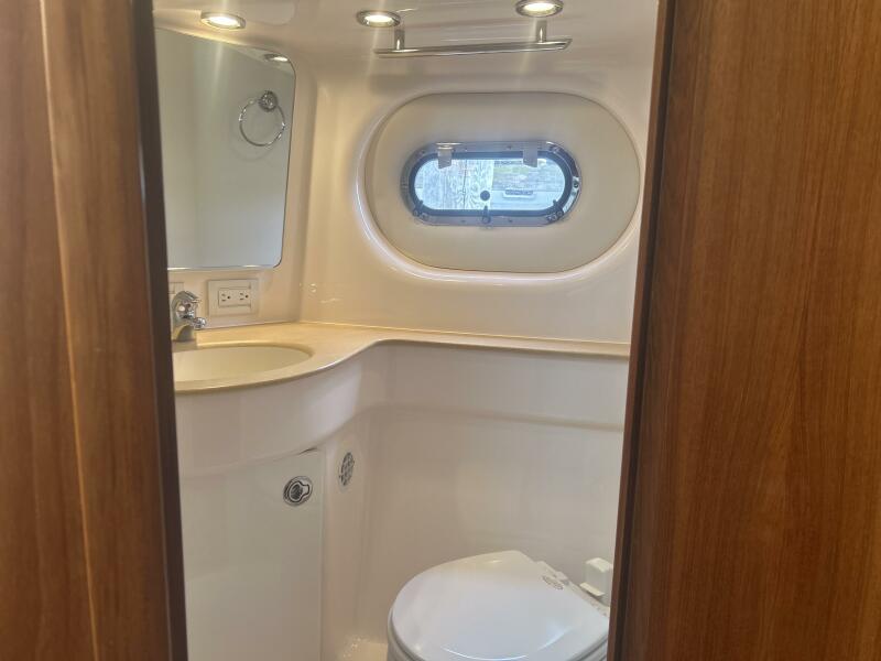 - Head: One head (bathroom) with shower, sink, storage. Good size for a 36’ boat.