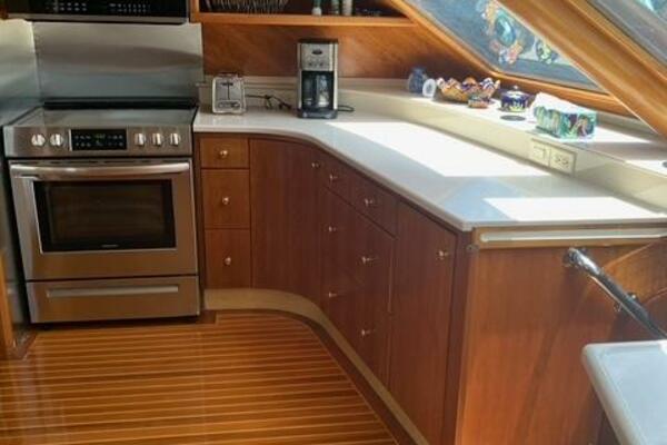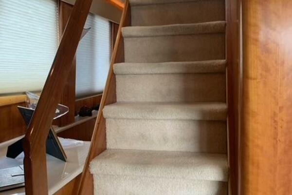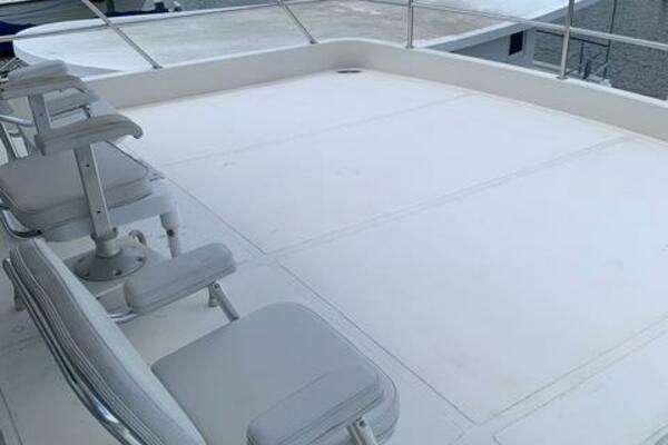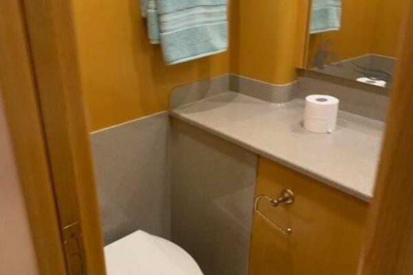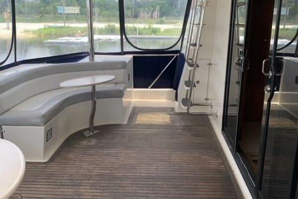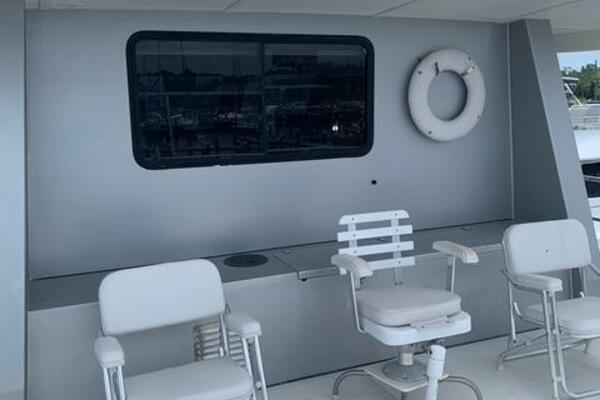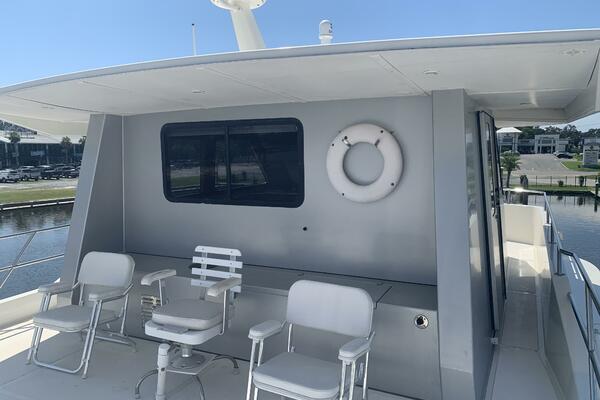 The pilothouse is designed with large windows and excellent sightlines, providing great visibility and access to state-of-the-art navigation equipment. Above, the flybridge offers additional entertaining space with seating, a helm station, and plenty of room for relaxing while underway or at anchor. The helm area also includes its own head. A generous aft deck, located just behind the helm, creates the perfect spot to enjoy the sun and sea breeze.