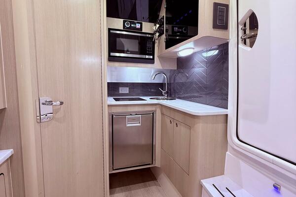 2024 Scout 400 LXF yacht kitchen with modern appliances and sleek design.