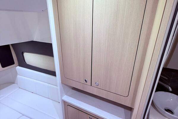 The well-equipped galley and raised dinette are seamlessly integrated into the salon, offering ample space for cooking and dining. Storage is cleverly placed throughout the yacht, maximizing every inch for convenience and livability without sacrificing aesthetics.