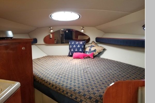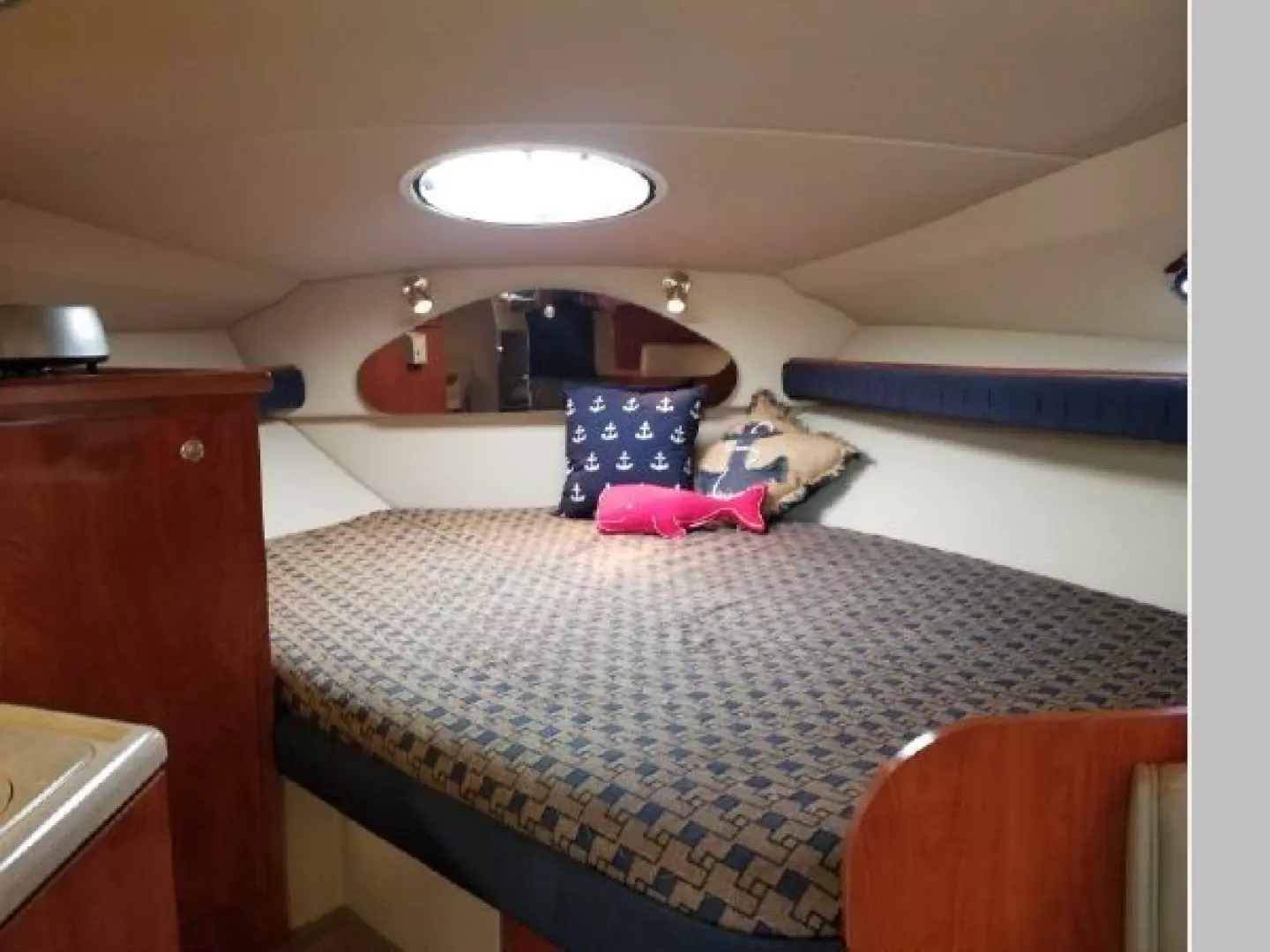 Incorporating many of the same innovative design ideas that made the earlier 3075 Express so popular, the Cruisers 280 CXi Express gives boaters luxury performance in an affordable package. Sleek hull lines and curves, a roomy cockpit, excellent handling and great performance successfully blend with extraordinary below deck comfort, quality construction and fine attention to detail. Like her sisterships, the 280 Express is no slouch on the water. She surges onto plane quickly and easily, maintaining her smooth ride for everyone aboard and living up to her designation as a true performance cruiser. She's also comfortable. In the cockpit, a double-wide helm seat and the fore- and aft-facing cockpit settees provide ample room for owners and guests. The ergonomic design includes plenty of space for extra electronics and, ensuring additional ease of movement, offers a center windshield walk-through and a companionway to the side rather than in the center. A cockpit sunlounge with cockpit table makes the 280 perfect for those summer-afternoon anchorages. Despite the room above the deck, the living space below seems to belong to a larger boat. The wide-open layout includes a crescent-shaped convertible dinette with cherry table to starboard and a full-service galley to port with an electric refrigerator and electric single burner stove. A microwave oven is standard, while a TV/VCR is available as an option. Plus, the 280 boasts a spacious forward double berth and a fixed double berth aft. In both cases, the sleeping areas can be curtained off for privacy or left open to provide an unsurpassed living space for a boat in this size range. The midships head, located to port, offers full standing headroom and a shower.
