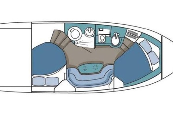 The overall layout includes the extended bathing platform, leading to an open cockpit with ample seating for up 6 adults. Forward of this is the helm station with easy access to the straightforward engine instrumentation and controls, GPS plotter and VHF. The boat does sport an arch, which allows convenient bimini and cockpit cover. The windshield has an opening center section, which allows easy access to the foredeck for mooring purposes or sun bathing.