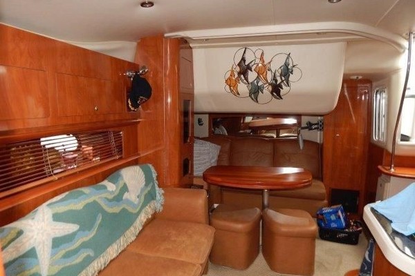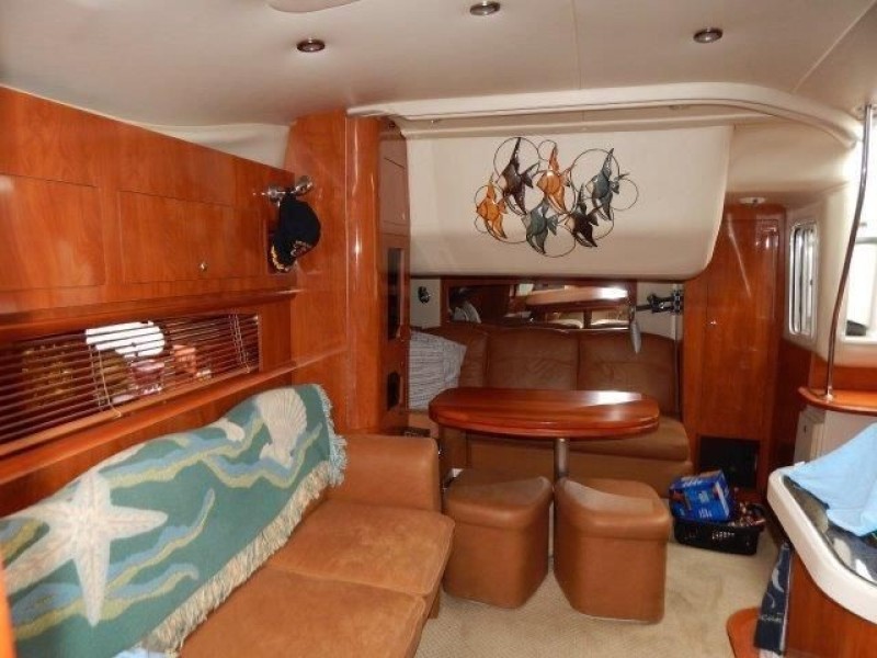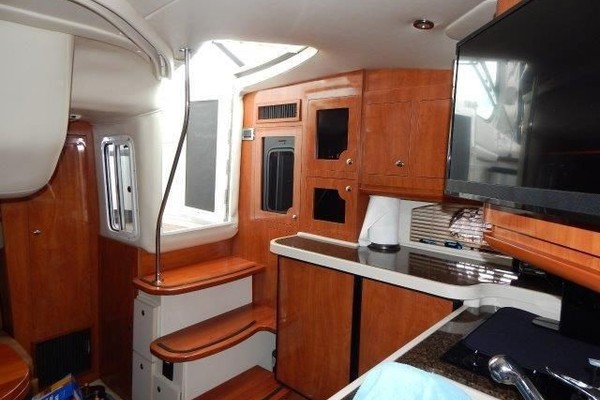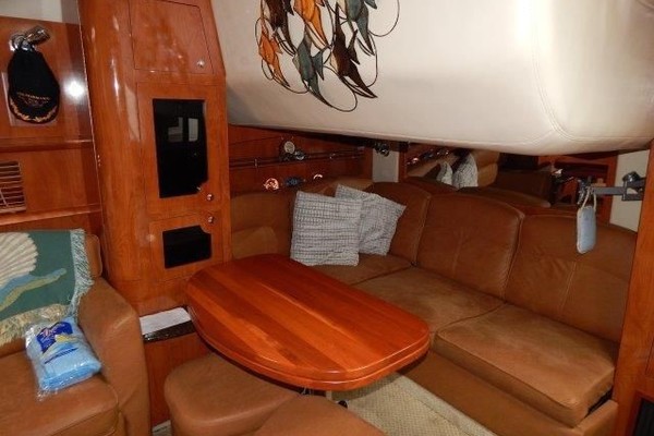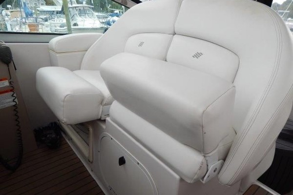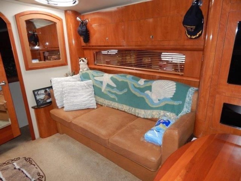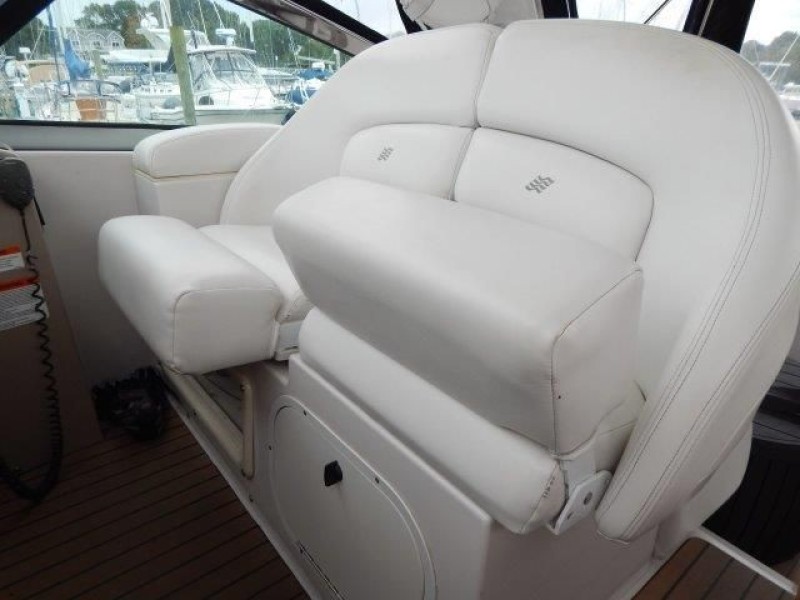 The 378 Vista is a complete cruiser that has it all. Full entertainment begins with an icemaker, refrigerator, sink and bar in the cockpit along with the arch mounted big screen. Step up to the helm area to find seating conveniently arranged for relaxing or socializing underway, or at the slip. Below deck, the cabin opens to the full galley with dual refrigerators, there is a roomy V-berth with hanging lockers and zone lighting. The wood doors and cabinetry are upscale and storage is abundant. The flat-screen TV, DVD player in the salon and a head with separate shower stall are welcome features. This example has had good maintenance and amenities to enjoy her to the fullest. Call to see her in this nice weather before spring.