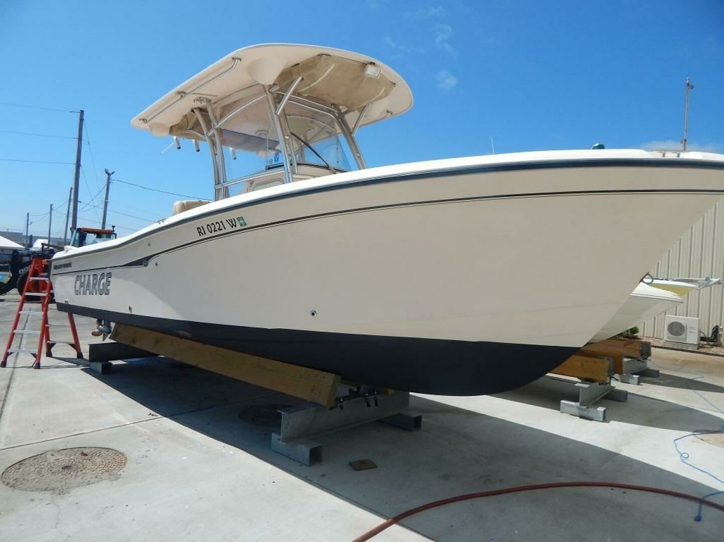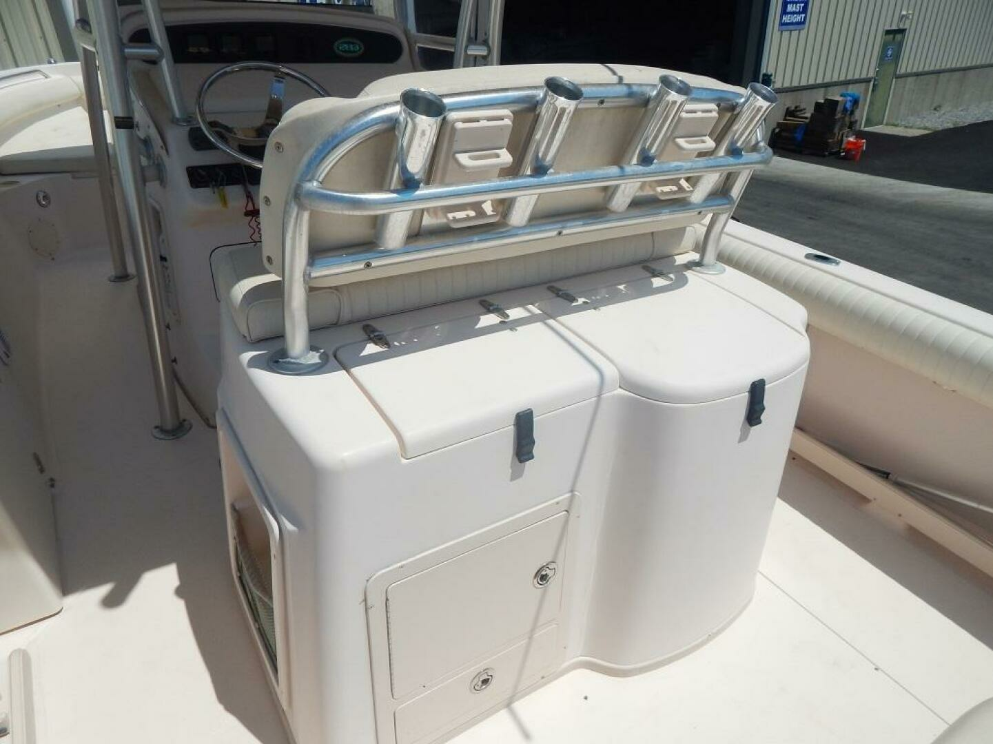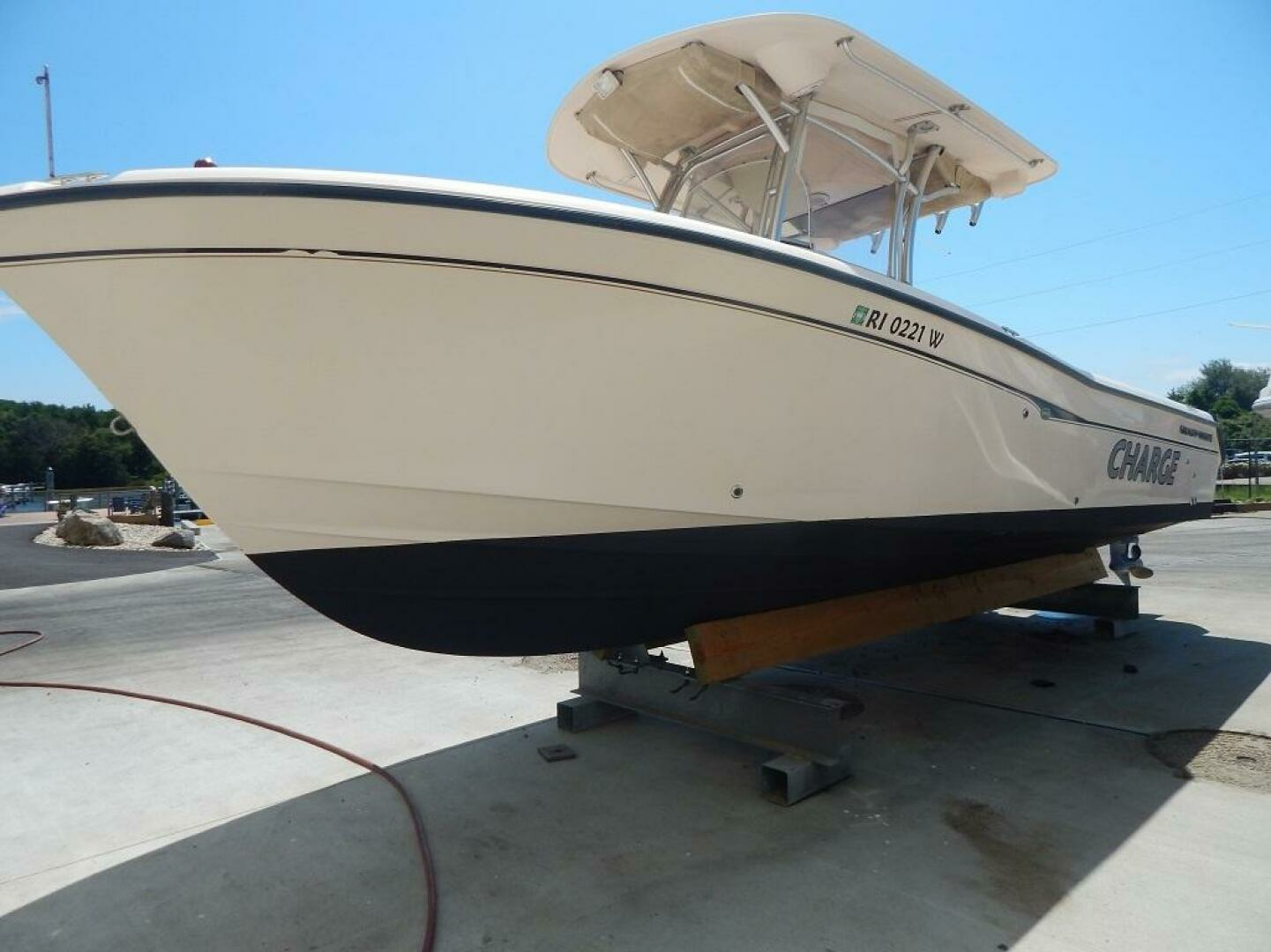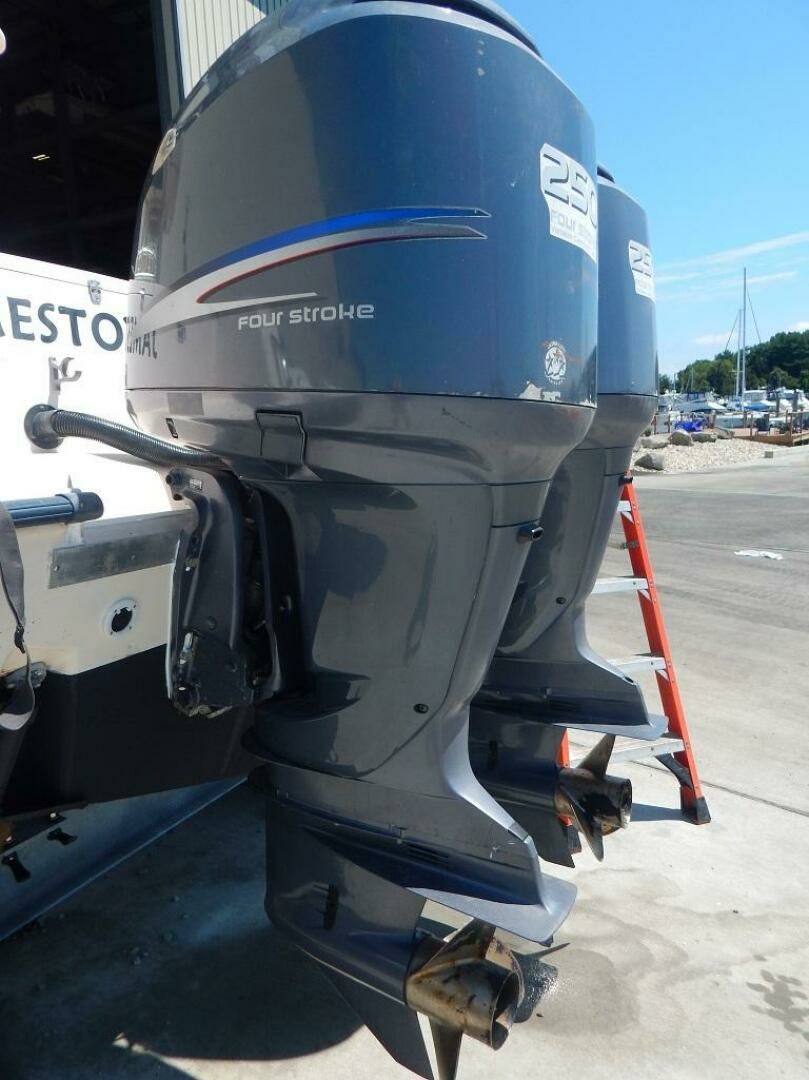 This Release 283 has been stored indoors for every winter season since this 2nd owner purchased the boat in 2013. The owner has her in the water every summer. Built on a 20 degree dead rise Deep Vee hull with 9 foot 3 inch beam for good seamanship under way and while drifting or at anchor. The standard features come well equiped and this one has the optional T-top with electronics box. The console provides one of the largest head compartments in the class. The twin Yamaha 250 4 strokes have 1221 hours. Call to see her by appointment here in sales tax free North Kingstown, RI.