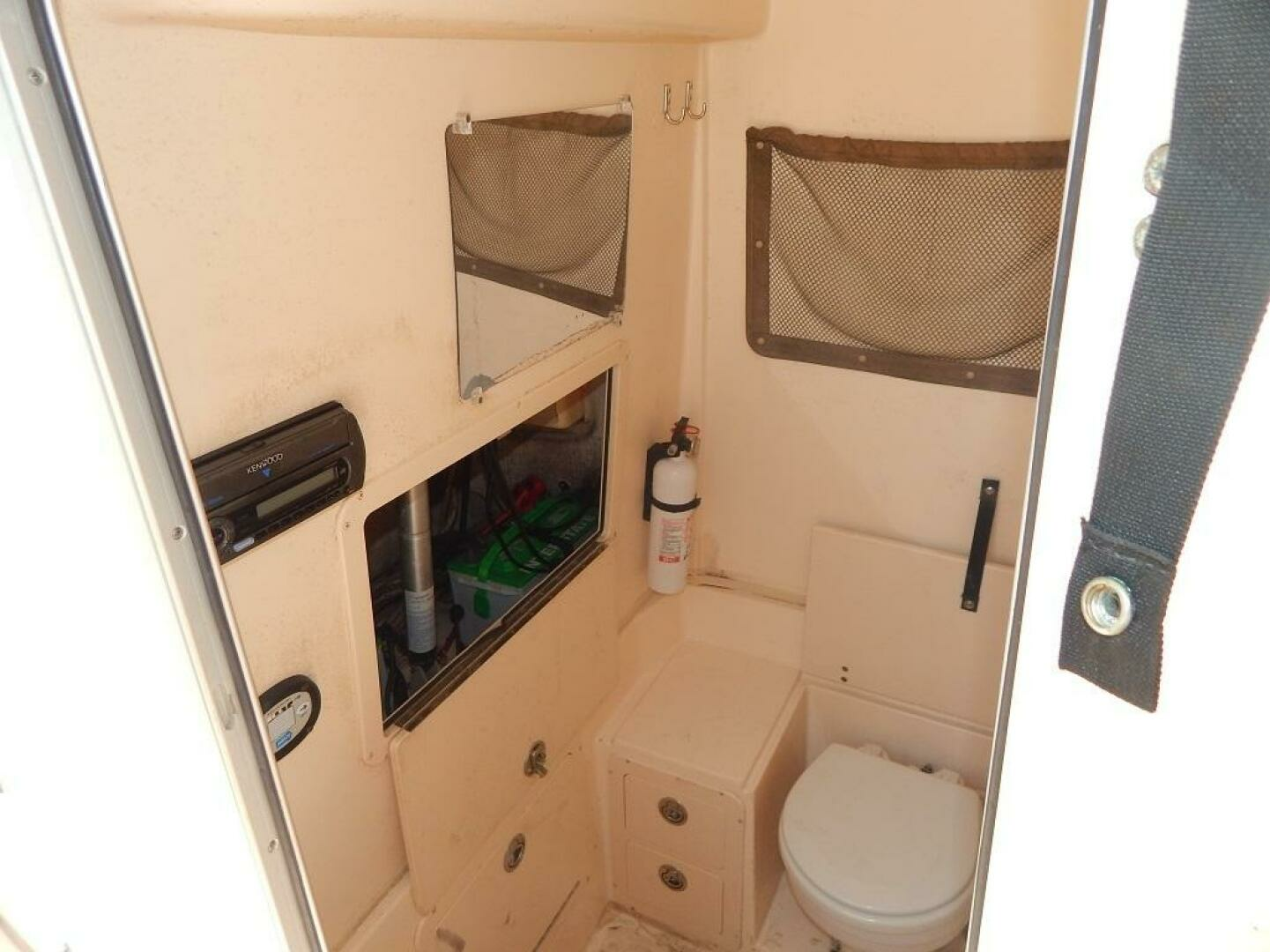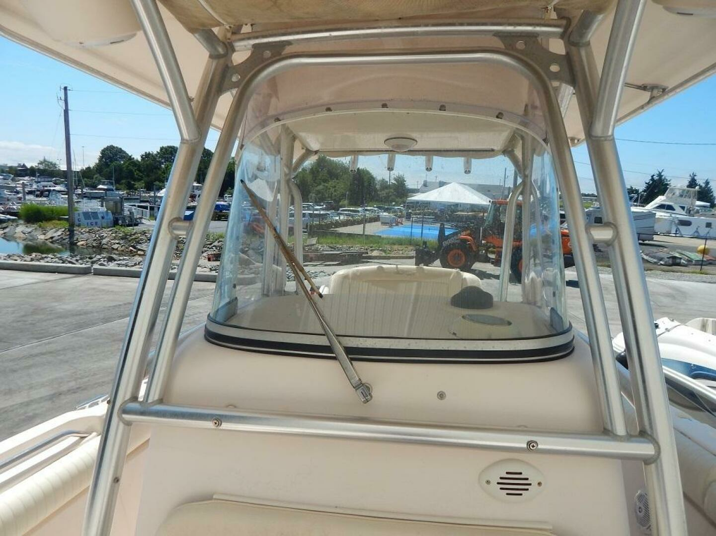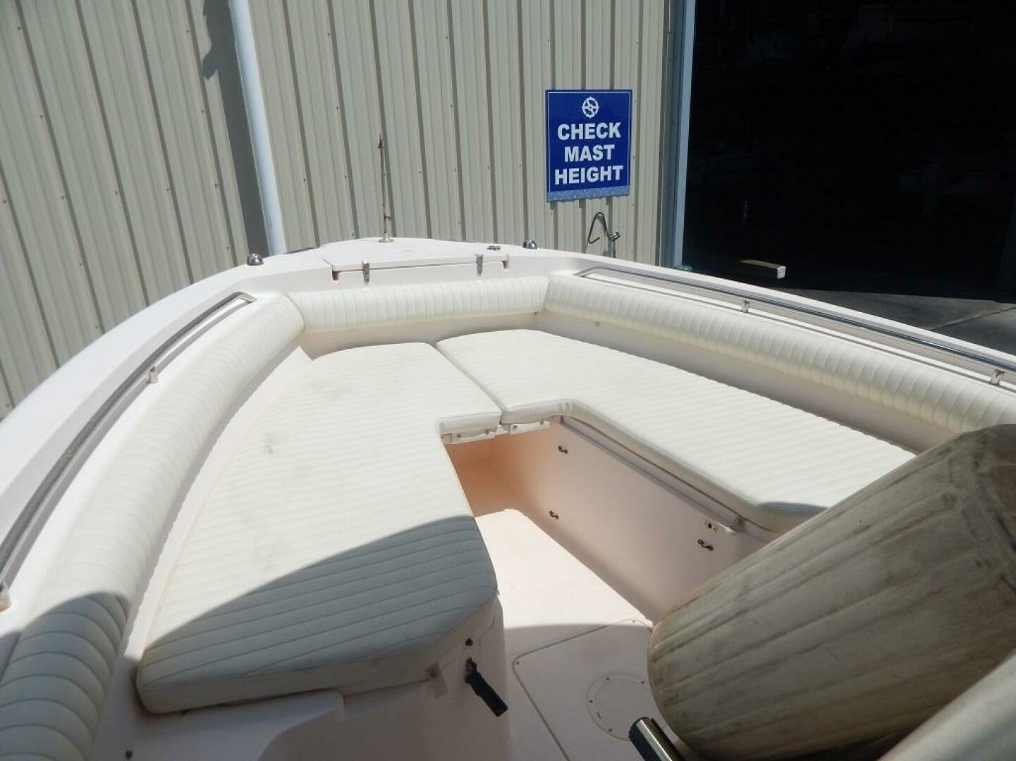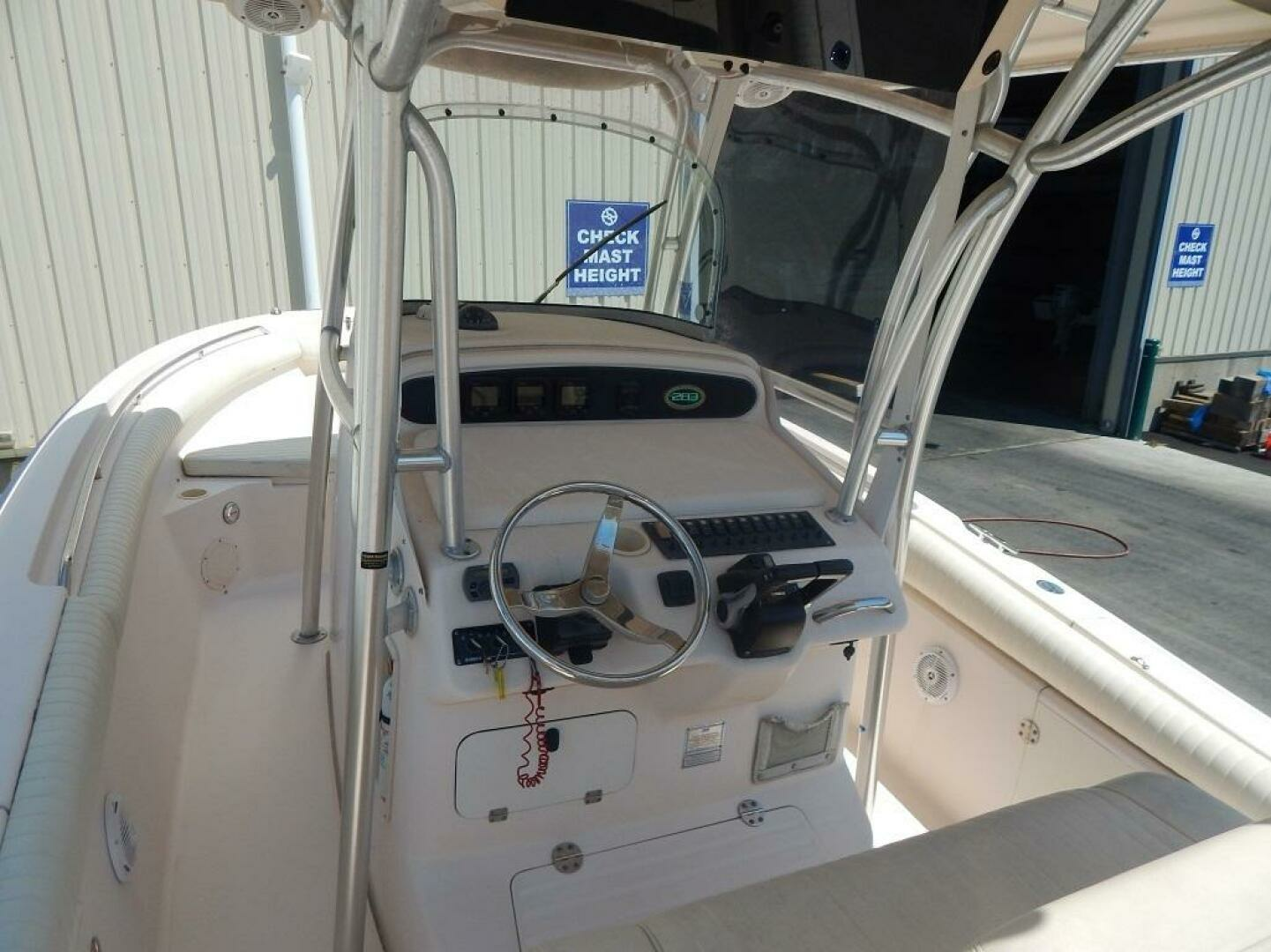 This Release 283 has been stored indoors for every winter season since this 2nd owner purchased the boat in 2013. The owner has her in the water every summer. Built on a 20 degree dead rise Deep Vee hull with 9 foot 3 inch beam for good seamanship under way and while drifting or at anchor. The standard features come well equiped and this one has the optional T-top with electronics box. The console provides one of the largest head compartments in the class. The twin Yamaha 250 4 strokes have 1221 hours. Call to see her by appointment here in sales tax free North Kingstown, RI.