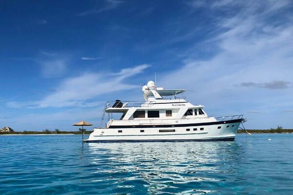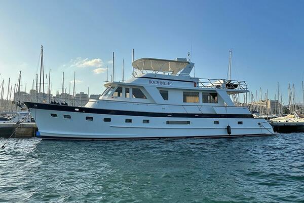 An excellent example of this sought-after Grand Alaskan 65 Flushdeck, with exceptional interior volume due to her Flushdeck arrangement. Only two owners from new and current owner for ten years. Always maintained to standard and professionally kept. The comfort and excellent seakeeping ability due to her semi-displacement hull form which is complemented with 2 6 sq.ft. stabilizer fins lets you cruise far and wide in complete safety and luxury. A great family yacht that is particularly well designed for safety of children on board, with her wide decks and enclosed cockpit and Portuguese bridge. The vessel went extensive dry-dock procedure in Palma in April - routine maintenance - hull painting, antifouling, and polishing of the sides. BOCHINCHE is US registered but ready to cruise in the Mediterranean as she has her VAT paid. She would make a fantastic yacht for a couple of seasons in Europe and then can be shipped back to the US where she will be US compliant and ready to go.