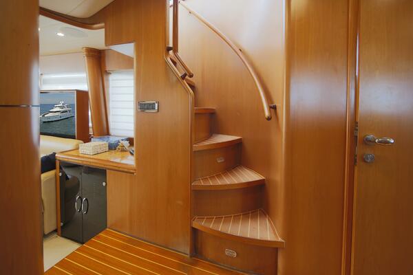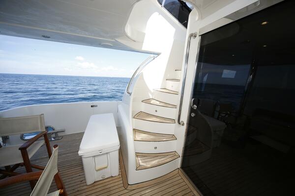 - (7) Molded steps w/teak treads to Flybridge with (5) courtesy lights and handrail