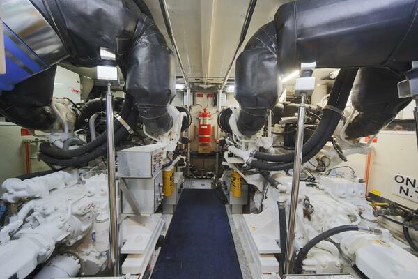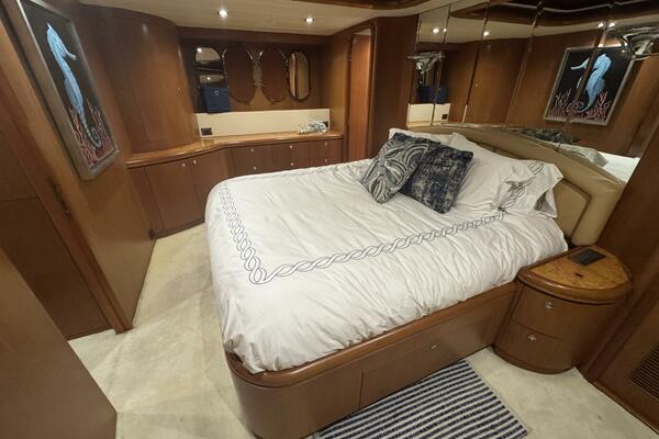 Recent Services and Updates: - New EZ2CY FlyBridge Enclosure - Wired Remote Yacht Controller - New Sea Deck on Flybridge - New Electric Kenyon Grill on Bridge - New Starlink WiFi - New TV on Flybridge - New Exterior Speakers - New Air Chiller System (June 2025) - Zero Speed Stabilizer System (heat exchangers serviced and new run dry pump added) - New Helm Steering Pump- New Hot Water Heaters - New painted Teak Overhead ceilings in Cockpit and Flybridge (May 2025)- New Bottom / props scanned and tuned (2024) - Updated Garmin 22” 8600 series MFD’s and Radar - New Hydraulic lifting Rams installed on Swim Platform - New Head Hunter toilet system and New Holding tank pumps and hoses - New Converter Box - ElectroSea Clear-line System - Rebuilt Tender Davit - New Refrigerators in Crew Quarters and FlyBridge