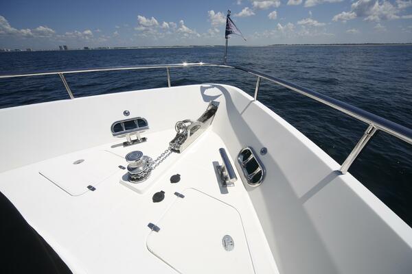 “Southern Lady” was built using Horizon's licensed SCRIMP process on the hull, deck, and superstructure for high strength and less weight. High-density coring is used both above the waterline and in the stringers. Styling is current and modern, featuring walk-around side decks and a pleasing profile.