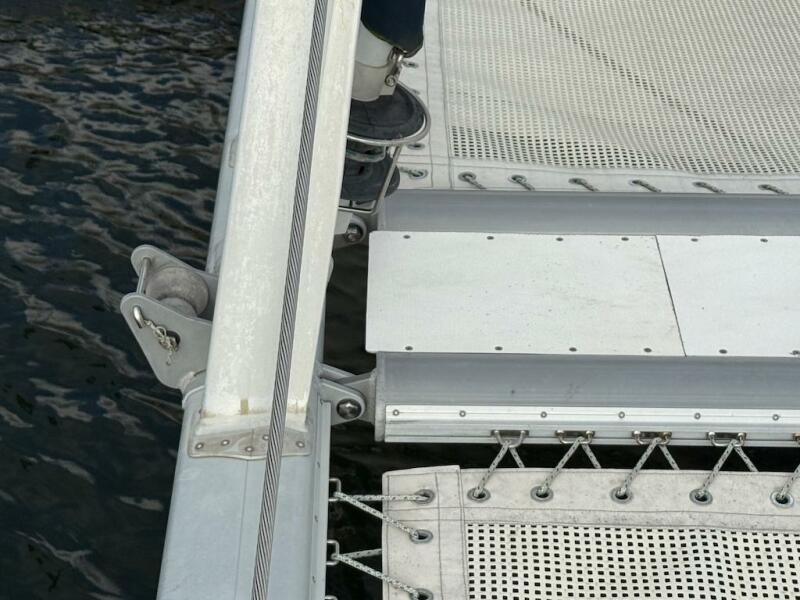 Entering the boat through bifold cockpit doors, you are greeted by a spacious and bright salon. The u-shaped galley is immediately to port, with the navigation station to starboard and dinette forward. An L-shaped settee provides plentiful seating for the entire crew, with matching stools that accommodate additional guests. The starboard ama contains the owner's suite, with the stateroom aft and head forward. Ample storage may be located throughout, via various cabinets, closets, and drawers. The private owner's head is forward, and features a separate shower stall. At the base of the steps to the portside ama, you will find the guest/day head, also featuring a separate shower stall. Comfortable guest cabins may be found forward and aft.