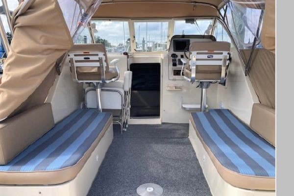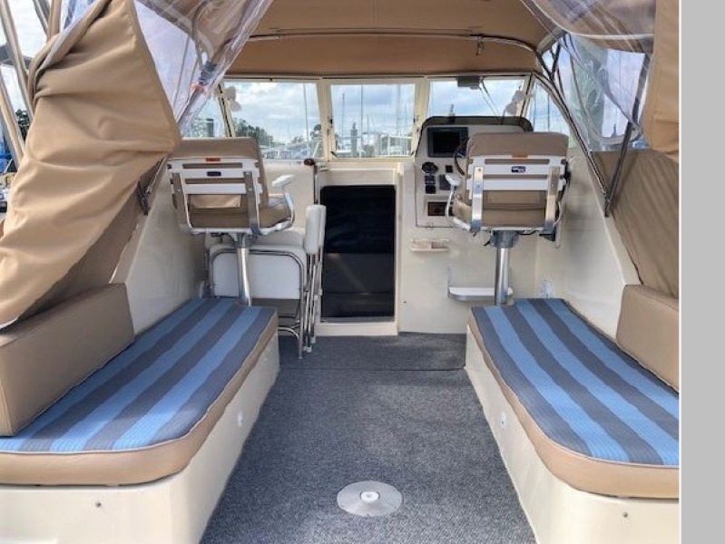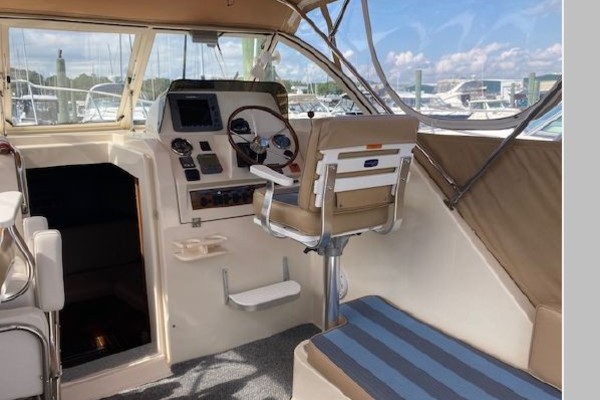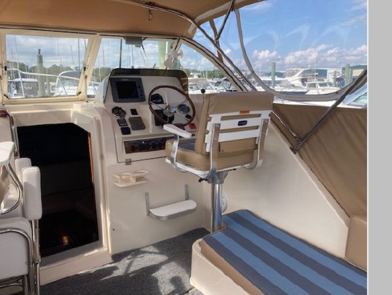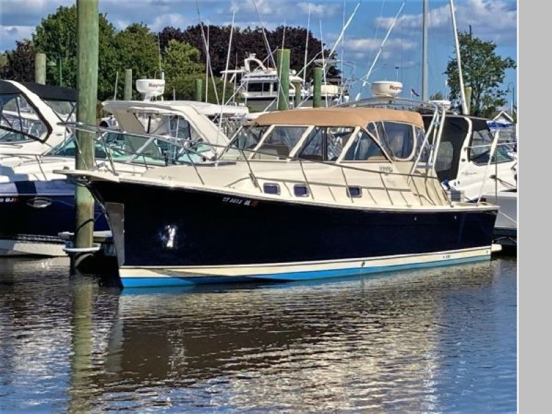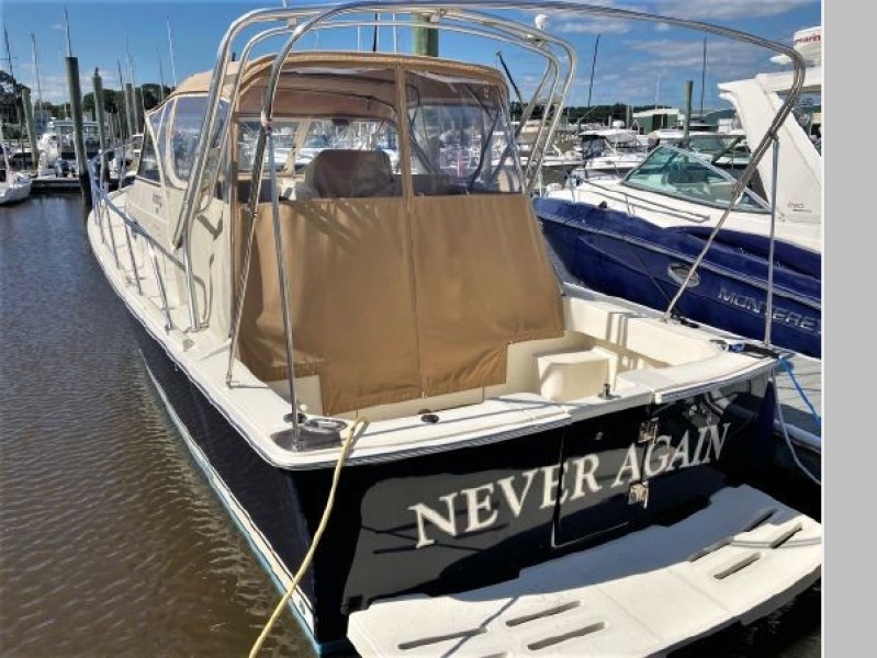 New September listing! NEVER AGAIN is an exceptional Mainship 30 Pilot Rum Runner II with a dependable 315hp Yanmar diesel with only 580 hours. A well-equipped boat with bow thruster, full canvas enclosure, cockpit awning, autopilot, radar, GPS chartplotter, new anchor windlass, air/heat, Vacu-Flush head and much more. Nice cherry interior with galley, large enclosed head, seating and a clever double-berth that folds away when not in use. Her conscientious owners keep her in immaculate condition and she shows great with her beautiful flag blue Awlgrip'd hull. Downeast style boats are in high demand. Don't miss this one!