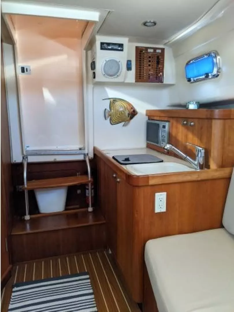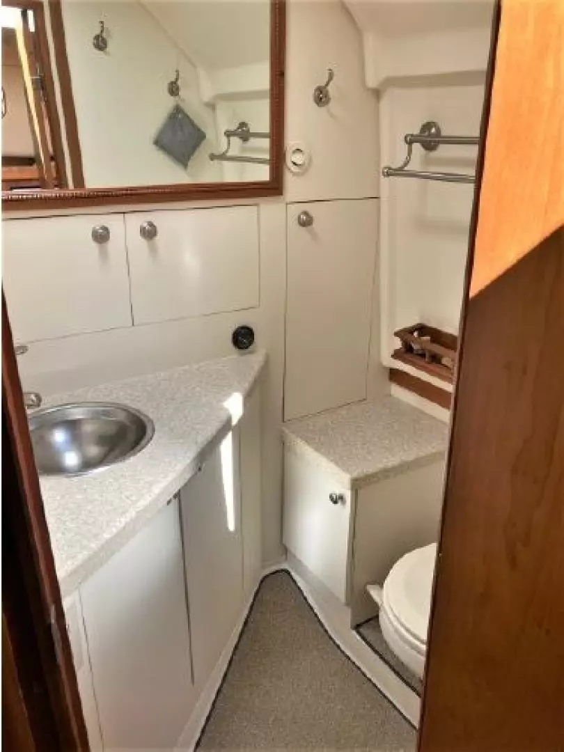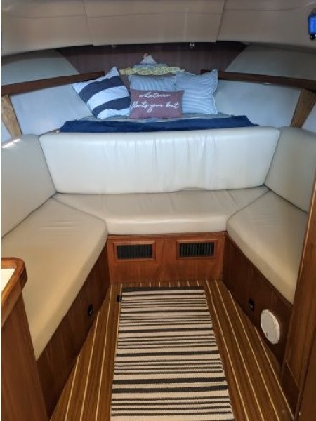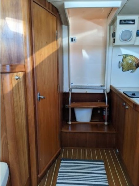 This is the updated Series II Pilot with revised interior layout, shortened keel, prop pocket for the shallower draft and a 5 blade propeller.
