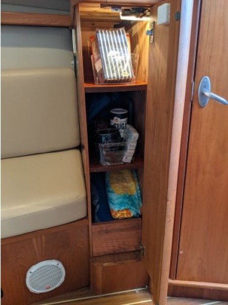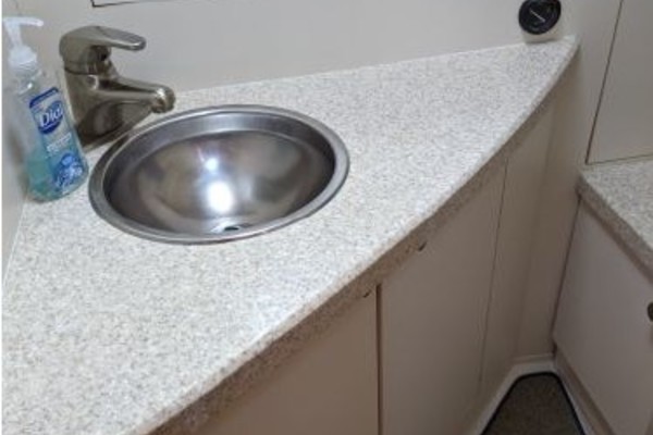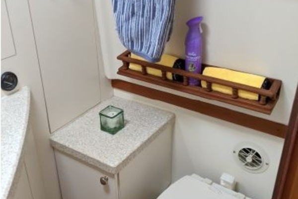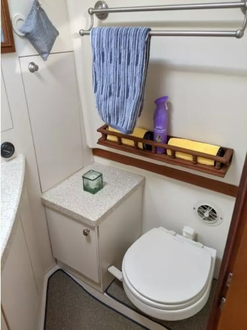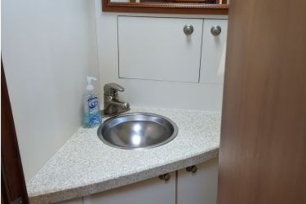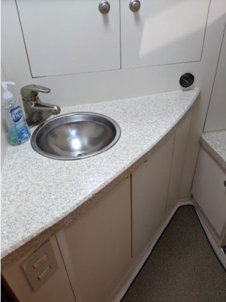 - Enclosed head compartment with shower, vanity, sink and storage lockers