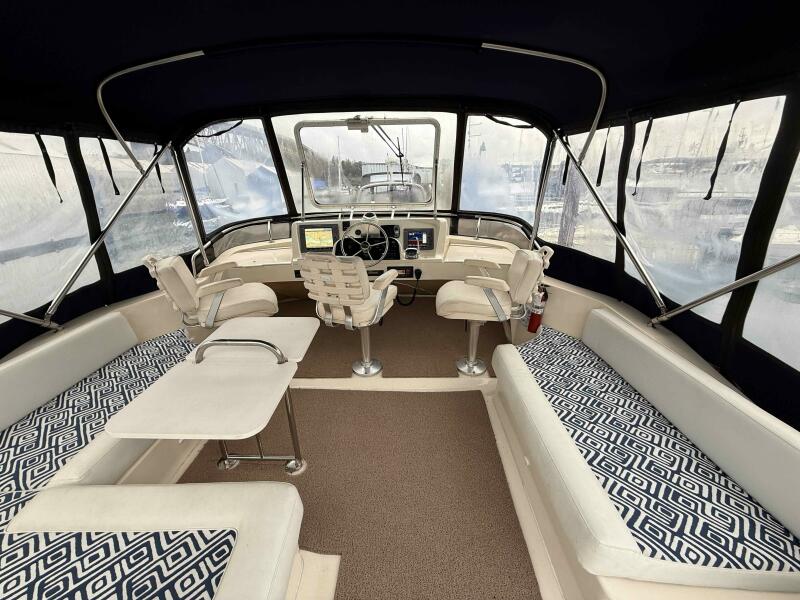 - Fully enclosed flybridge (with clear-view windshield & wiper)