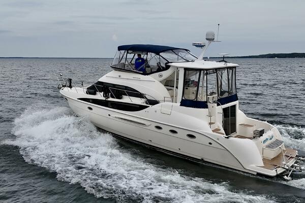 New to market September 2025! This clean freshwater example has been well-maintained and is ready for cruising. The Meridian 459 features a two-cabin, two-head layout. The large swim platform and cockpit provide easy access to the bridge via large molded steps, or into the aft cabin. The bridge and helm deck boast large, comfortable seating arrangements, perfect for entertaining. Down below, you have plenty of headroom and large windows providing lots of natural light. Aft you have the master with a walkaround queen and separate shower/head. Forward is a well appointed salon, day-head, and forward cabin with ensuite access.