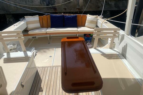 - The bridge deck raises up for access to the Yanmar engine and the engine room spaces