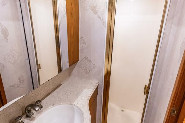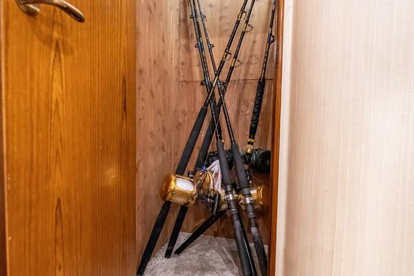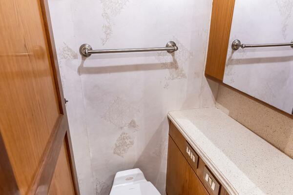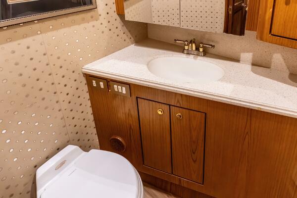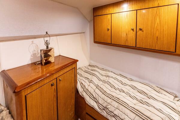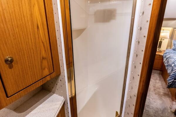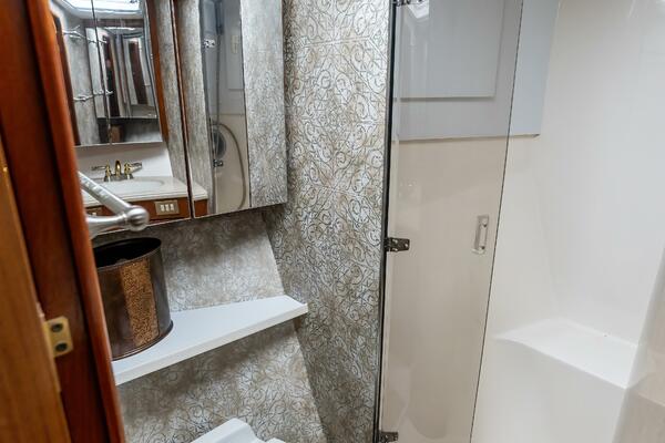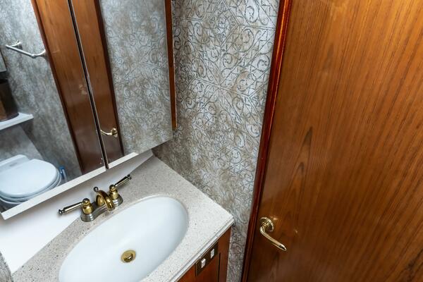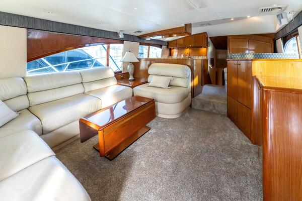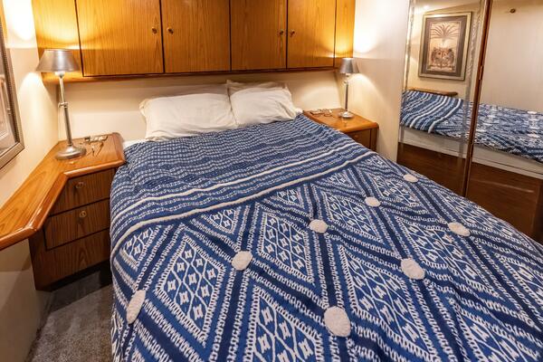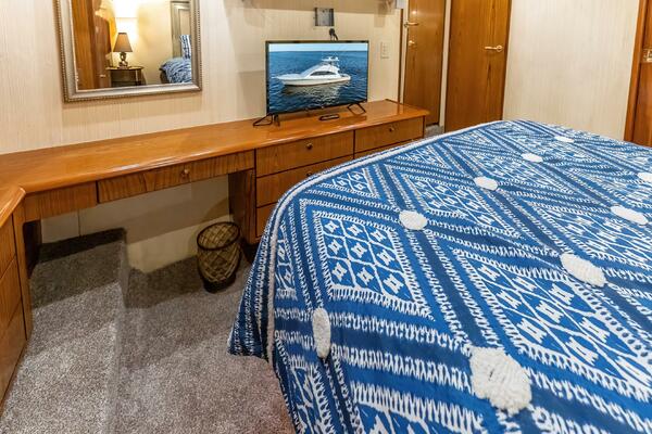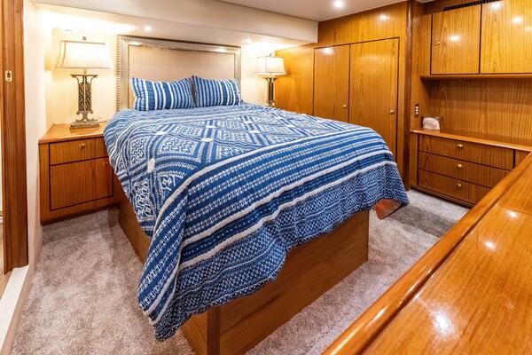 Down below, she features a 3 Stateroom/3 Head layout. All the accommodations are comfortable, well appointed, and roomy, with more than adequate stowage supplied by closets and drawer space enough for an extended weekend fishing trip or an island-hopping cruise. The salon & galley too offer all the comforts required to host friends and family.