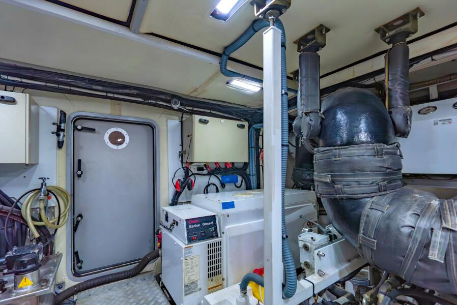 The engine room is located aft, accessed via the crew area or cockpit hatch. It houses twin diesel engines, a generator, and essential systems. Princess is known for excellent engineering spaces, and the 23M offers good access for maintenance and inspections.